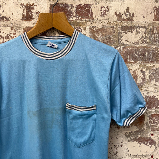 1970s Blue British Deadstock Pocket Crewneck T-Shirt