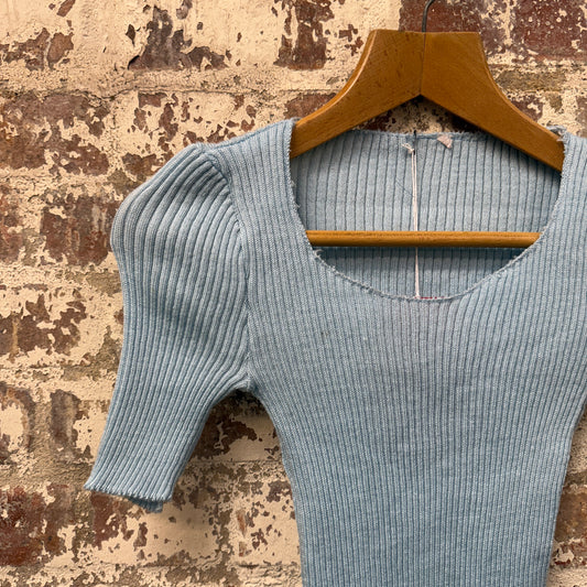 1970s 1980s Baby Blue Knitted T-Shirt Top