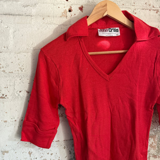 1970s Red John Craig Dagger Collar Polo Shirt Top