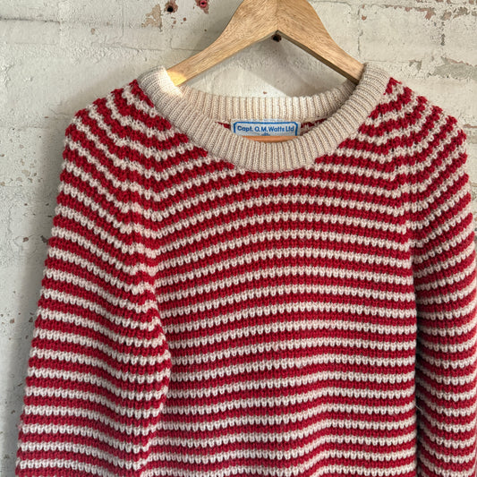 1960s Red Wool Knitted British Fisherman Jumper