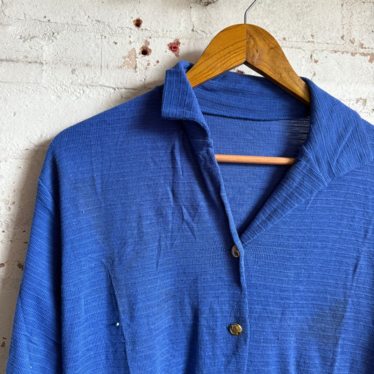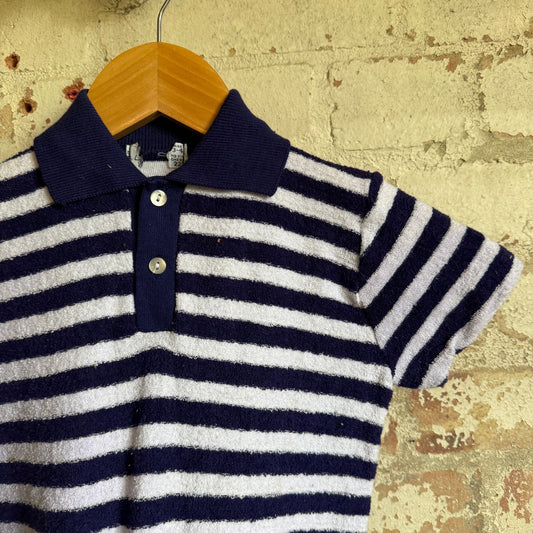 1970s Navy and White Stripe Towelling Polo Shirt Top