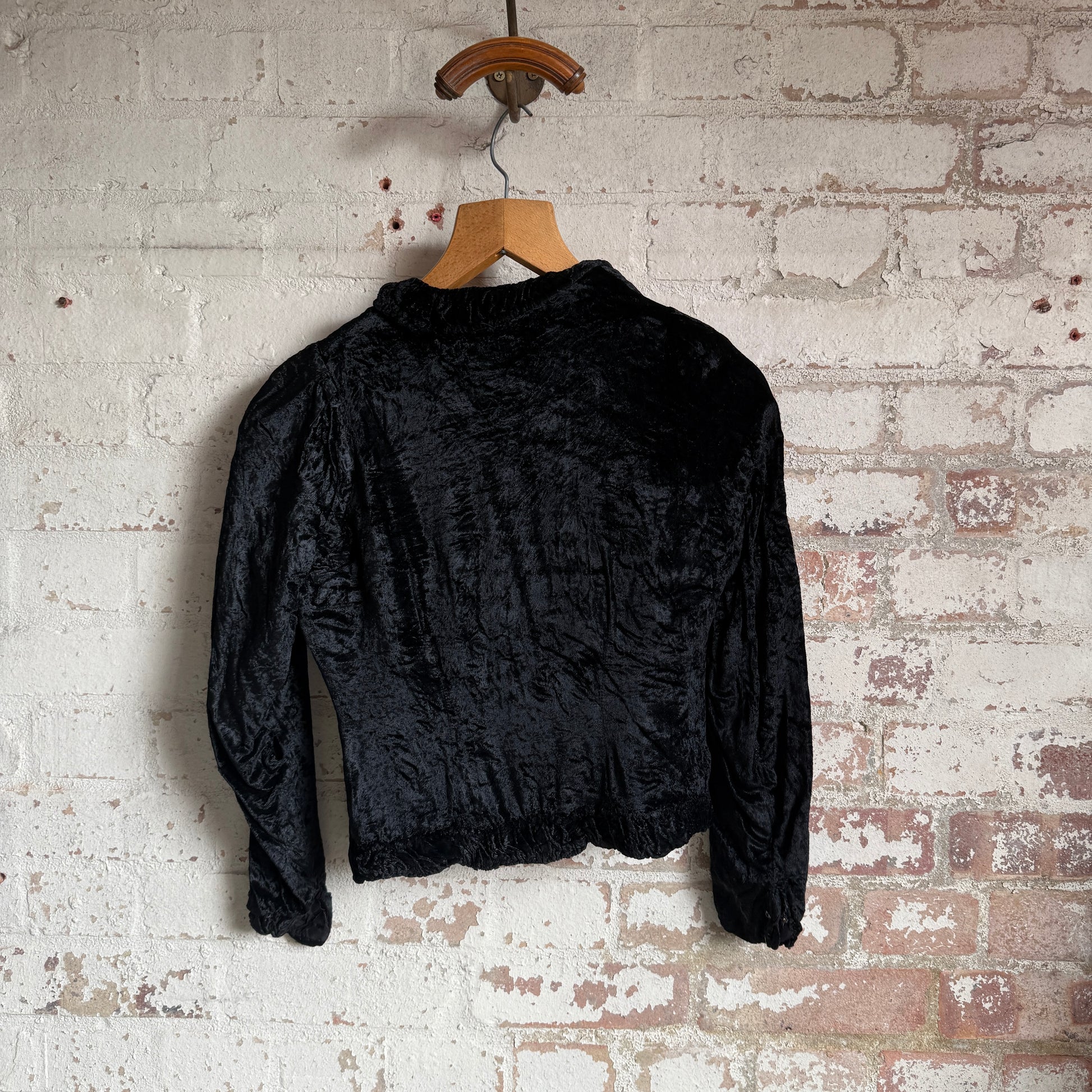 1920s 1930s Black Silk Crushed Velvet Jacket