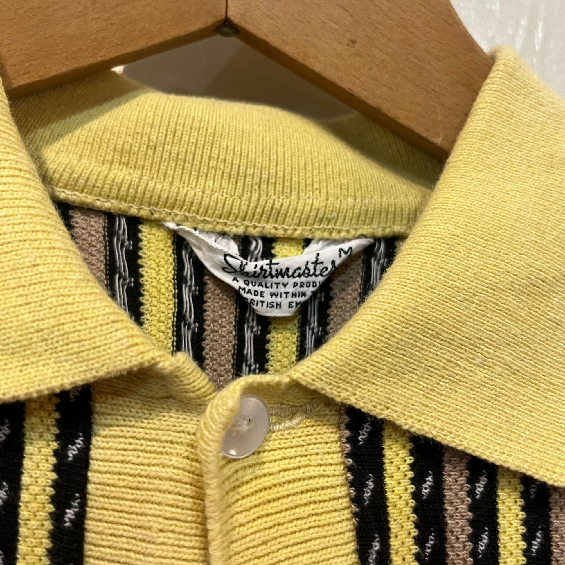 1960s 1970s British Yellow Striped Patterned Polo Shirt Top