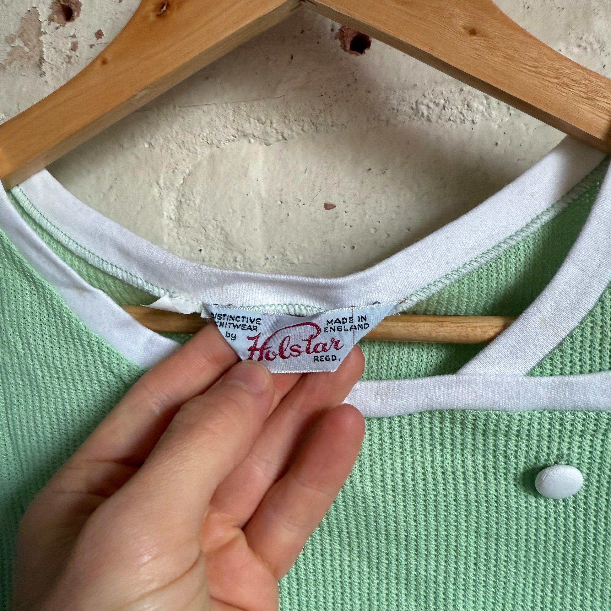 1960s Green Holstar British Polo Shirt Blouse Vest