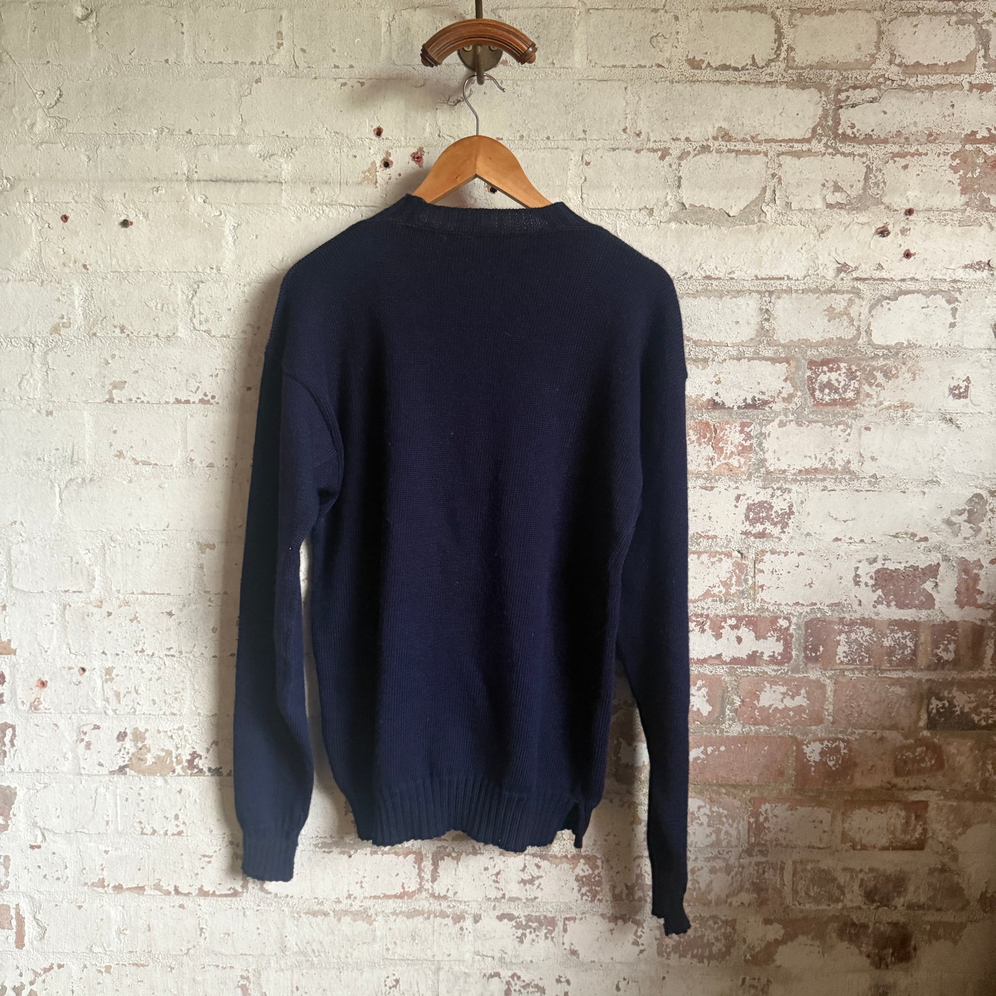 1970s 1980s Navy Guernsey Patterned Fisherman Jumper