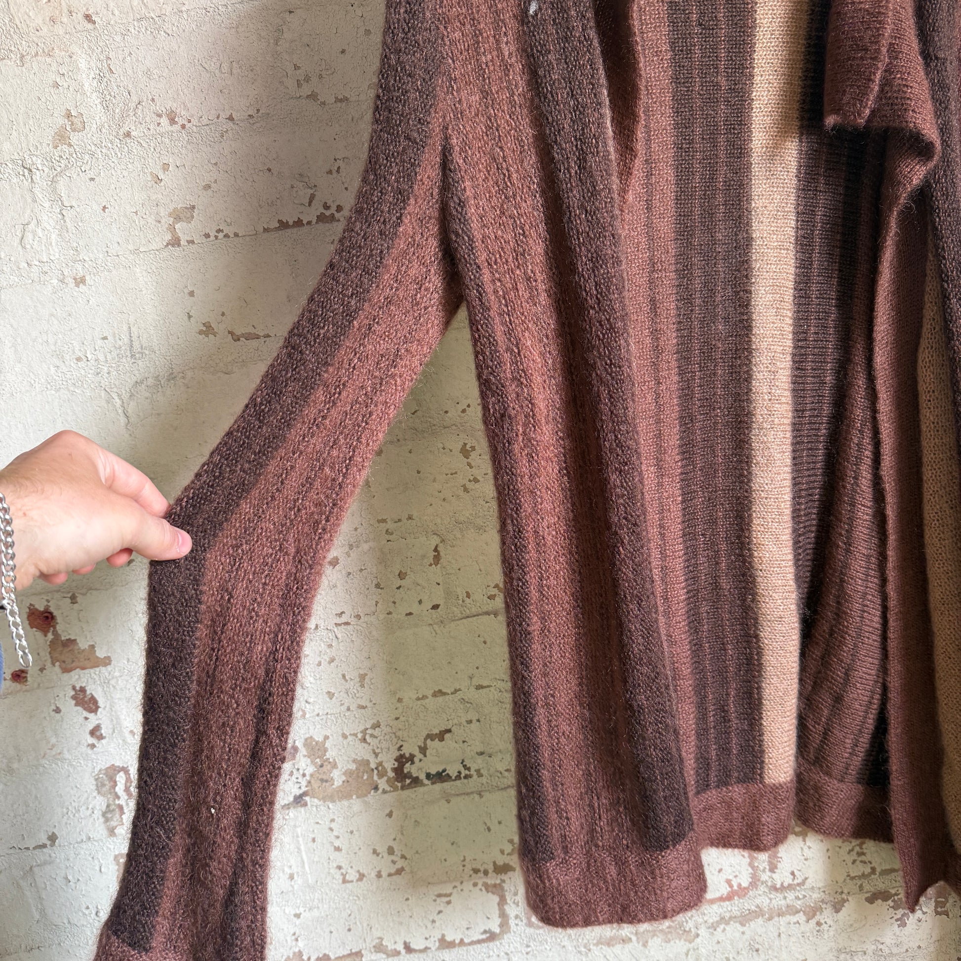 1970s Brown Knitted Patterned Cardigan Jumper Pullover