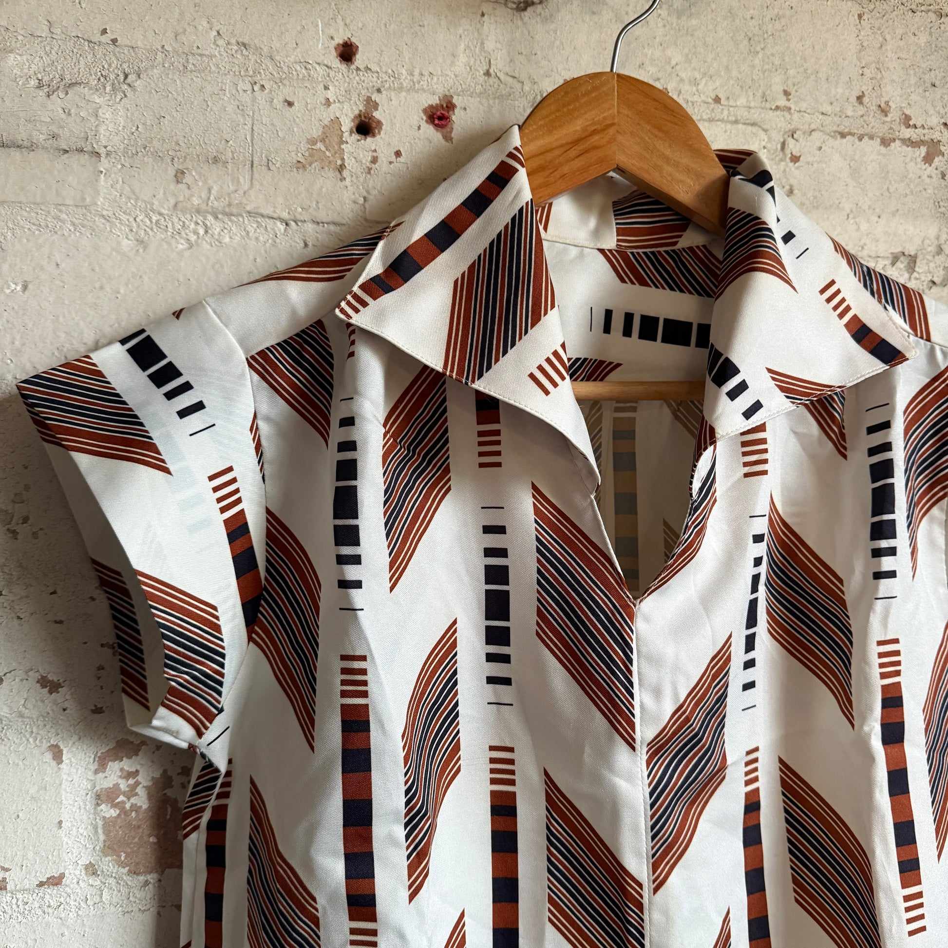 1970s Brown Patterned Blouse Shirt Top