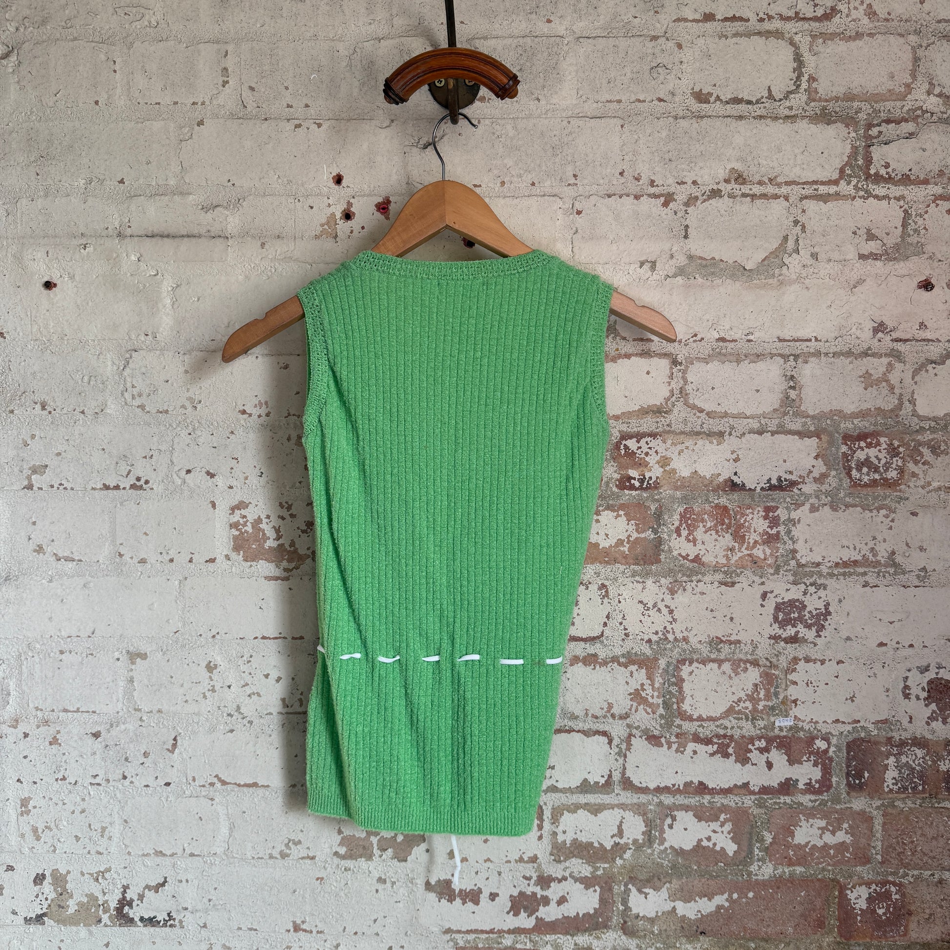 1970s Green Knitted Tie Waist Tank Top Jumper