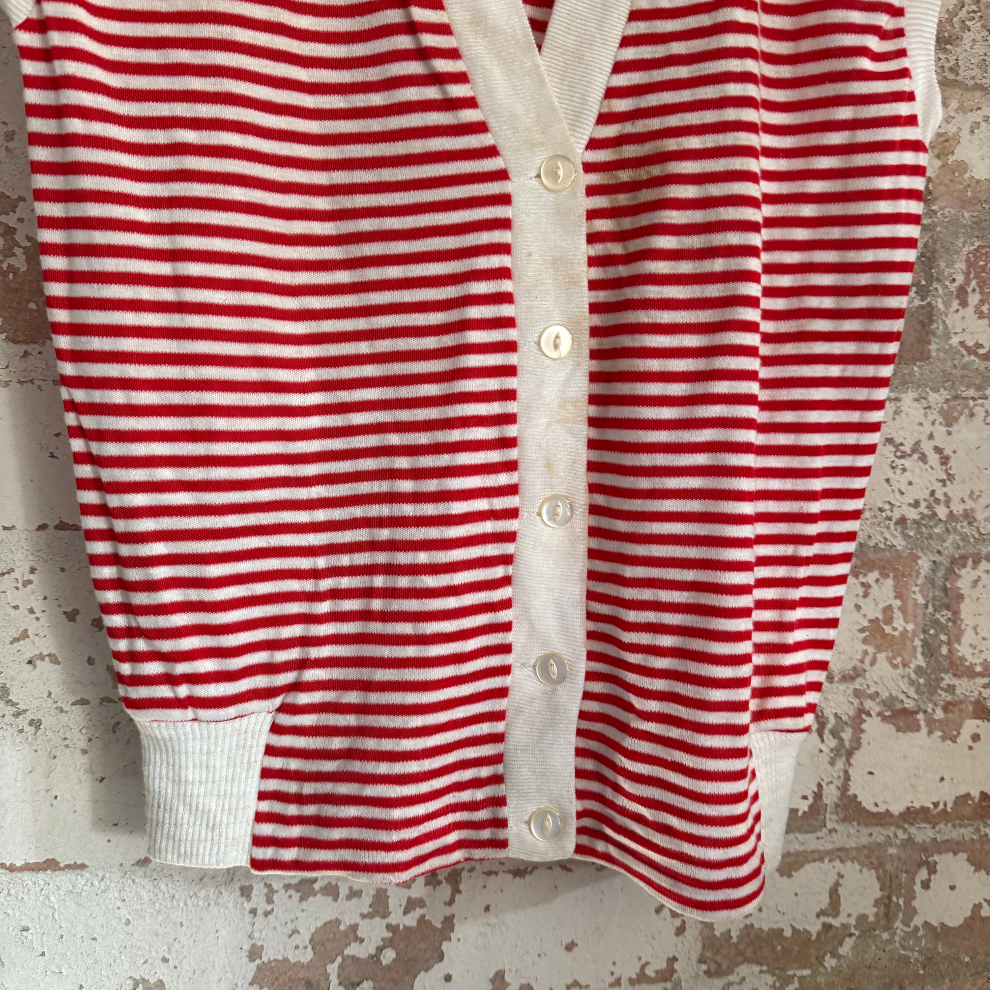 1970s Red Striped Cotton Button Cardigan Vest Top