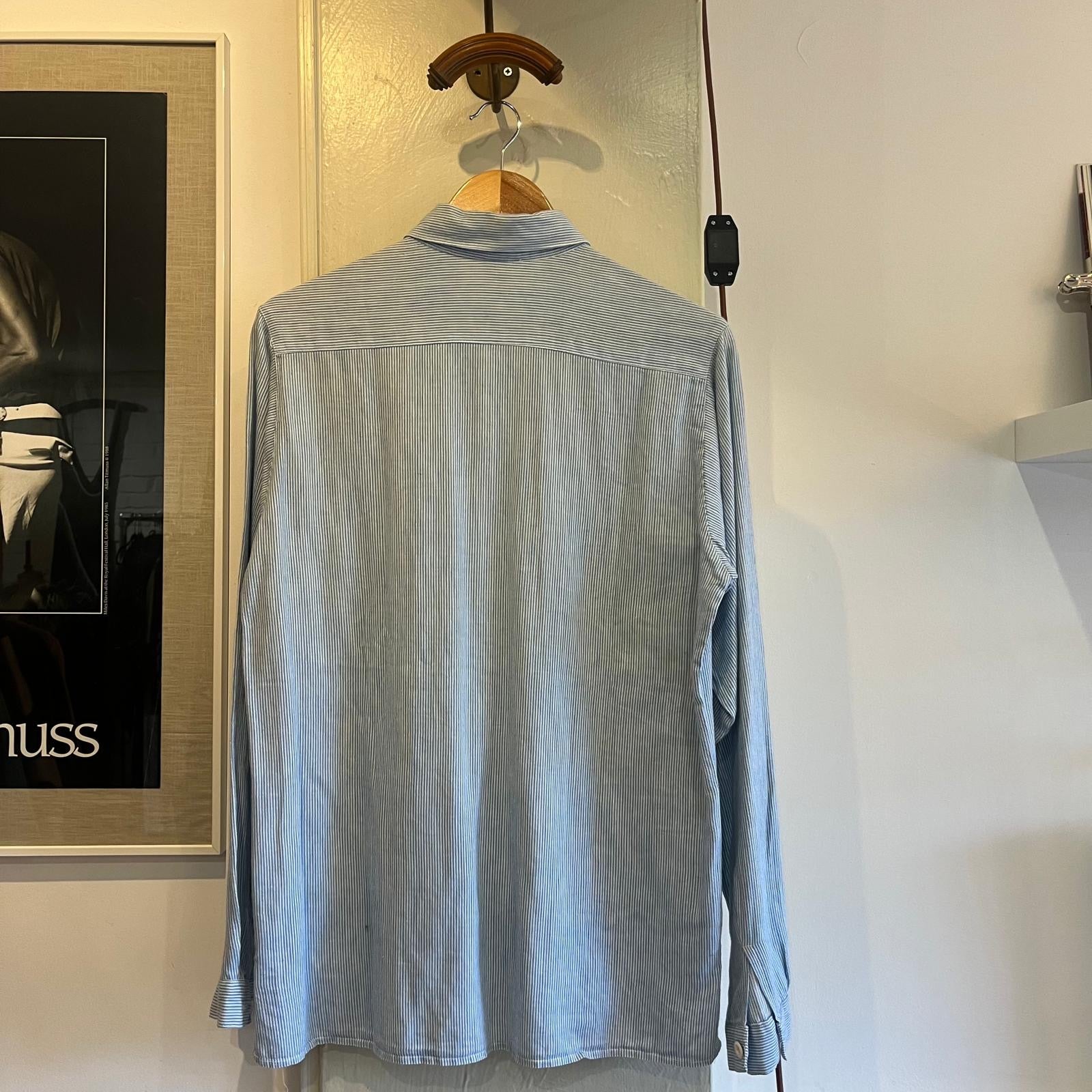 1970s Striped Baby blue Long Sleeve Shirt with Large Pocket Detail