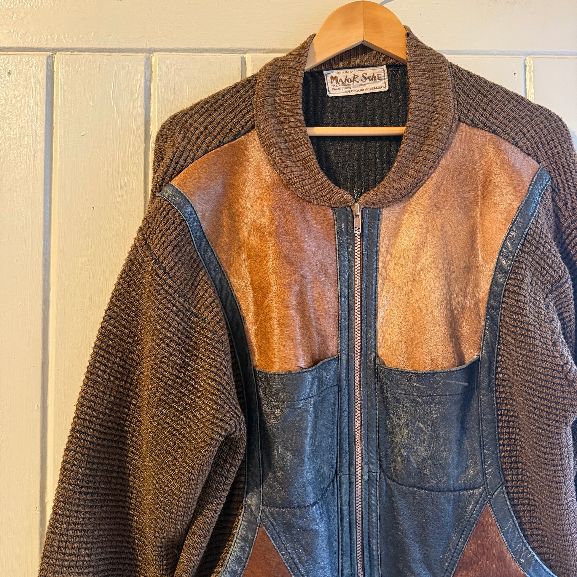 1970s Suede Knitted Italian Zip Up Bomber Jacket