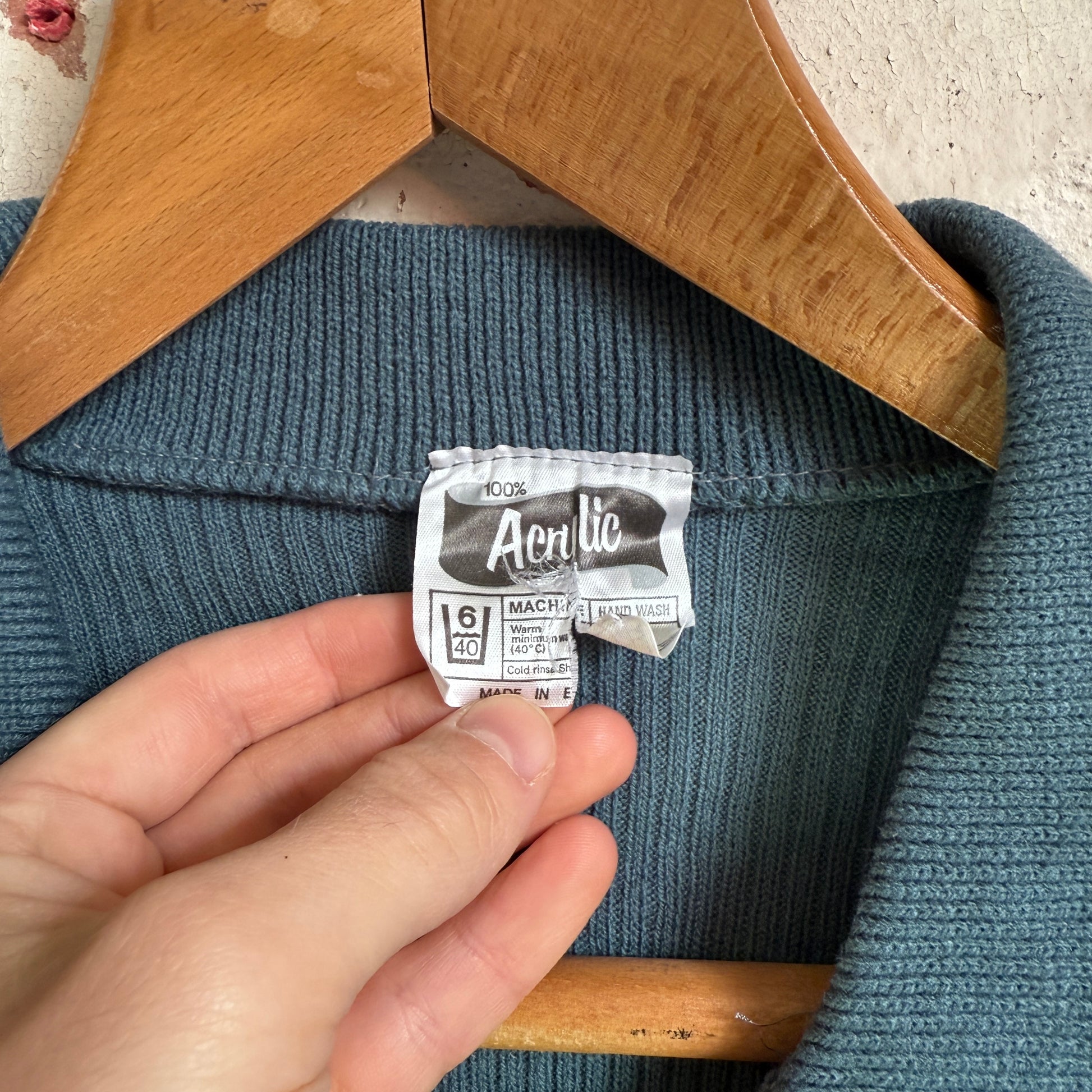 1970s Turquoise Knitted Zip Cardigan Jumper