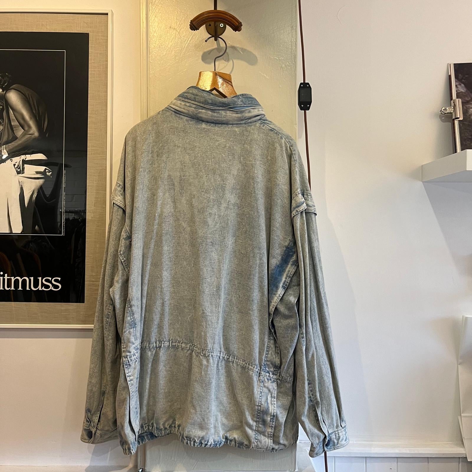 1970s Unusual Faded Blue Denim M65 Parka Style Jacket Coat