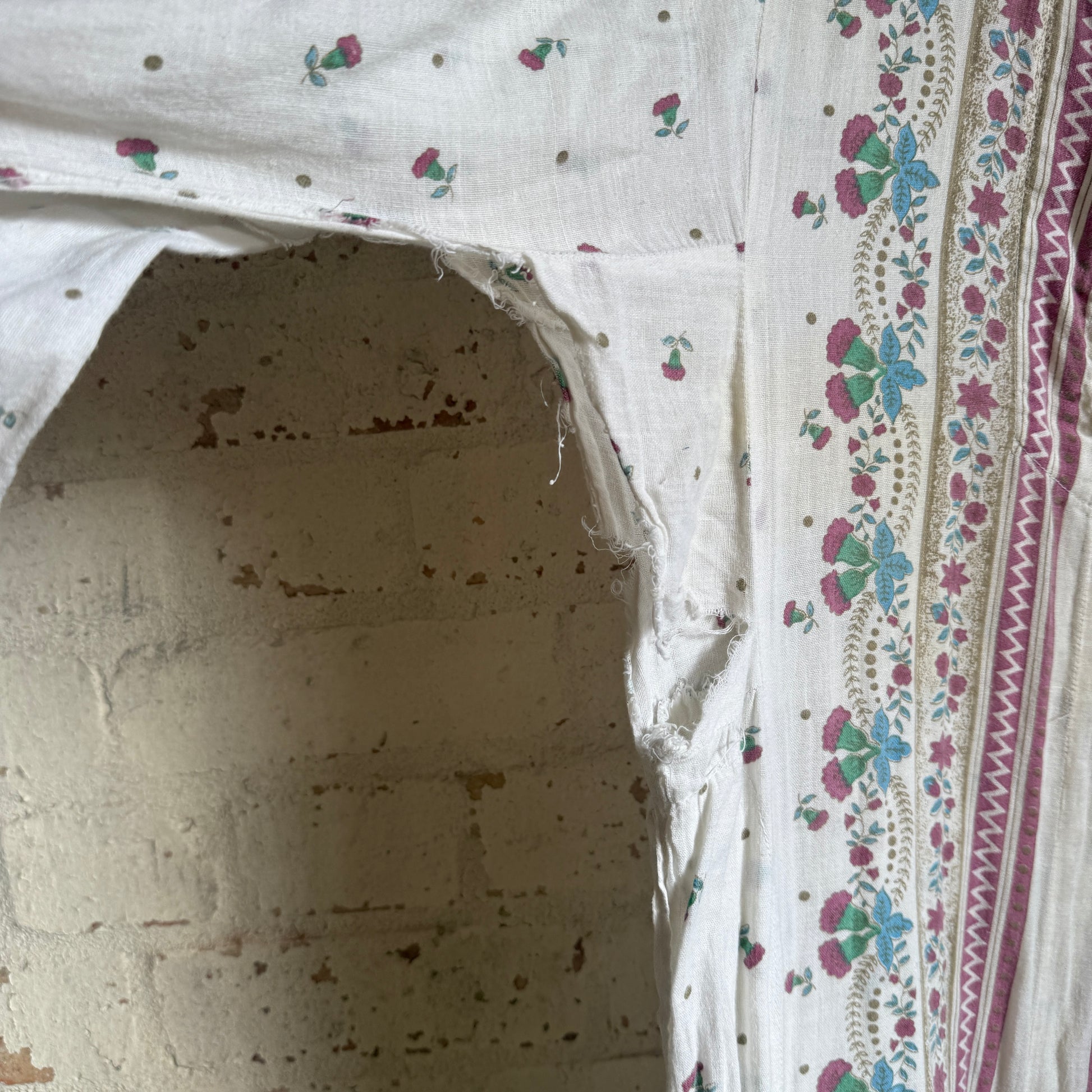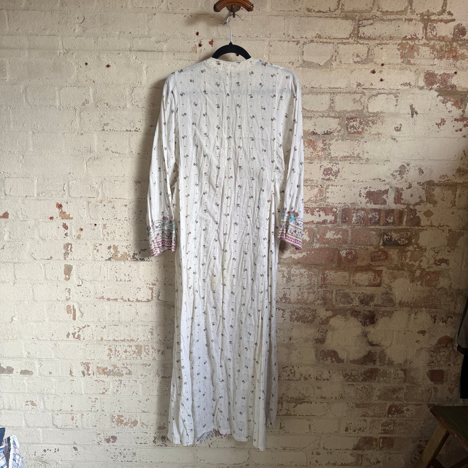 1970s White Indian Cotton Hippy Bohemian Dress