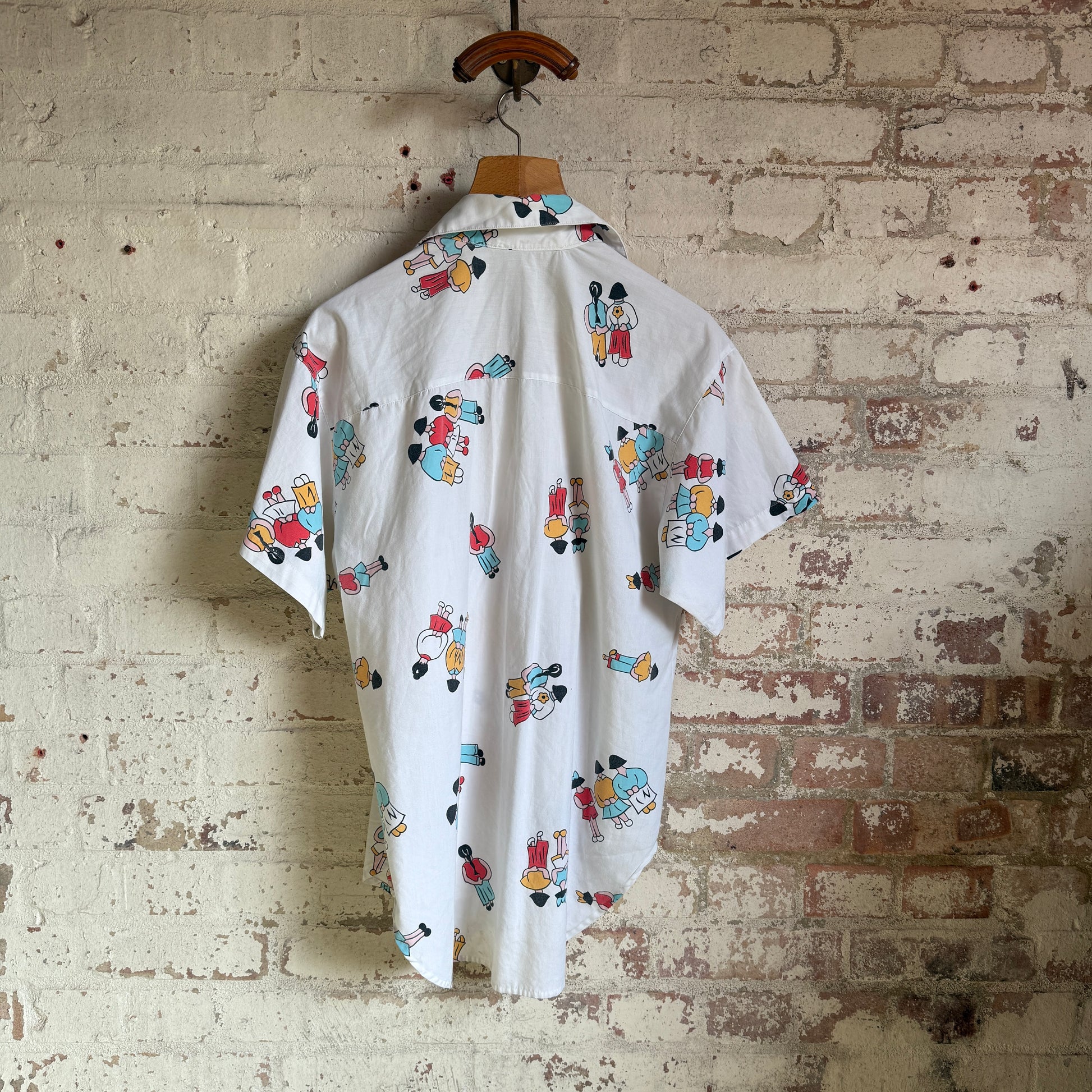 1970s White Unusual Graphic Button Shirt
