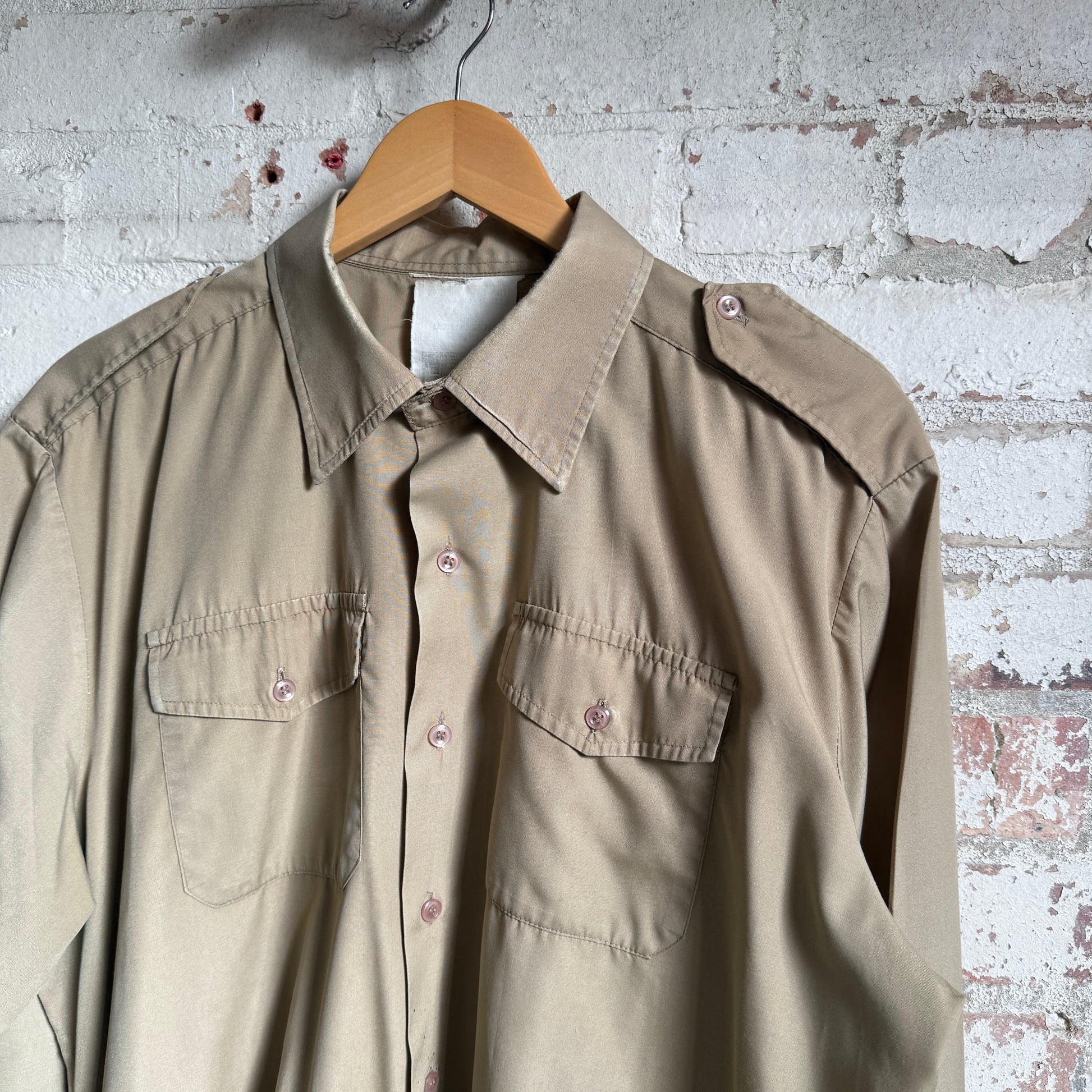 1980s Beige British Military Cotton Button Shirt