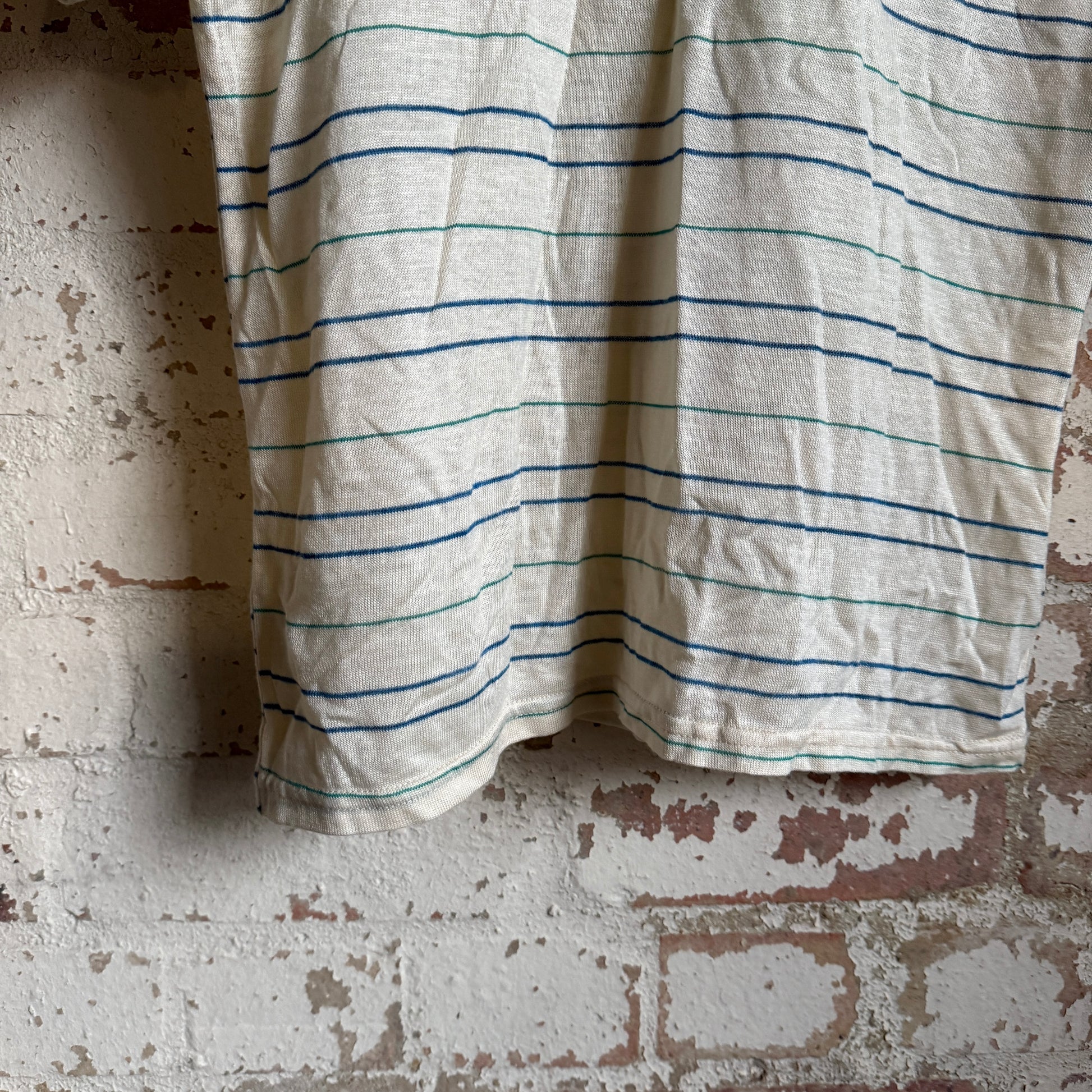 1980s Beige Striped Polo Shirt Top