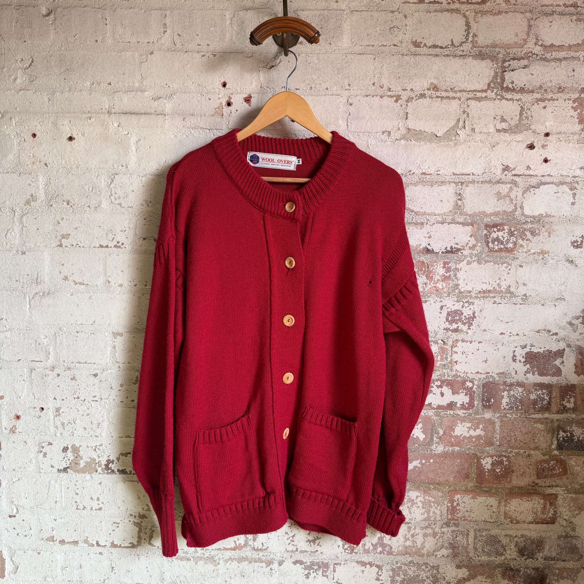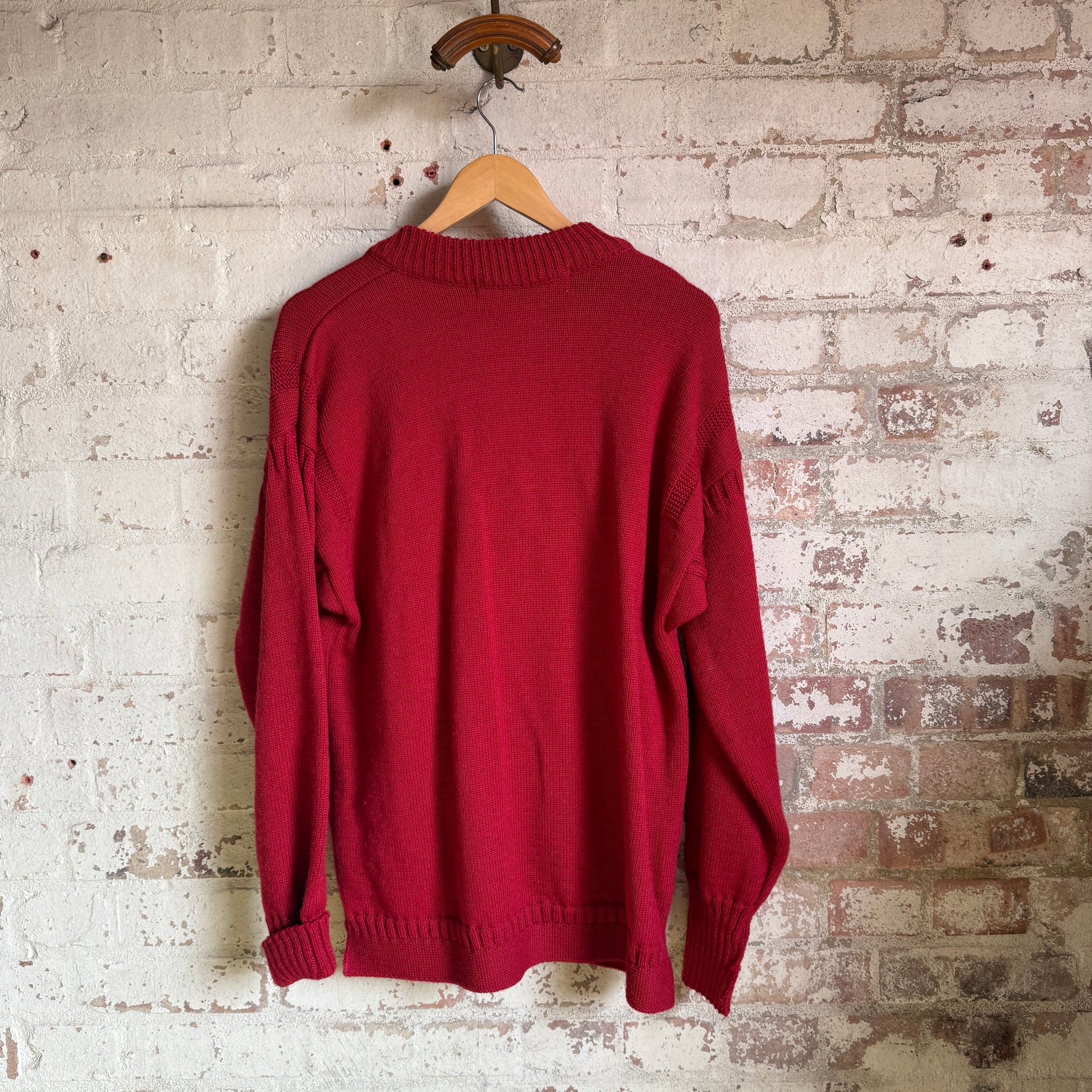 1980s Red Guernsey Knitted Button Jumper