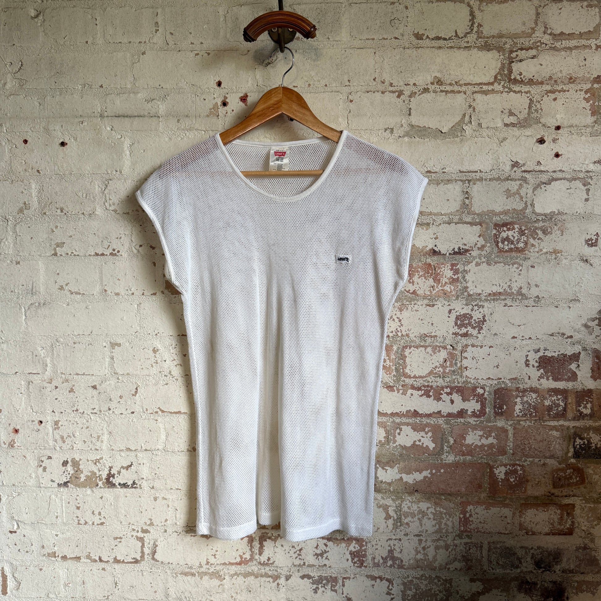 1980s White Levis Netting Vest T-Shirt Top