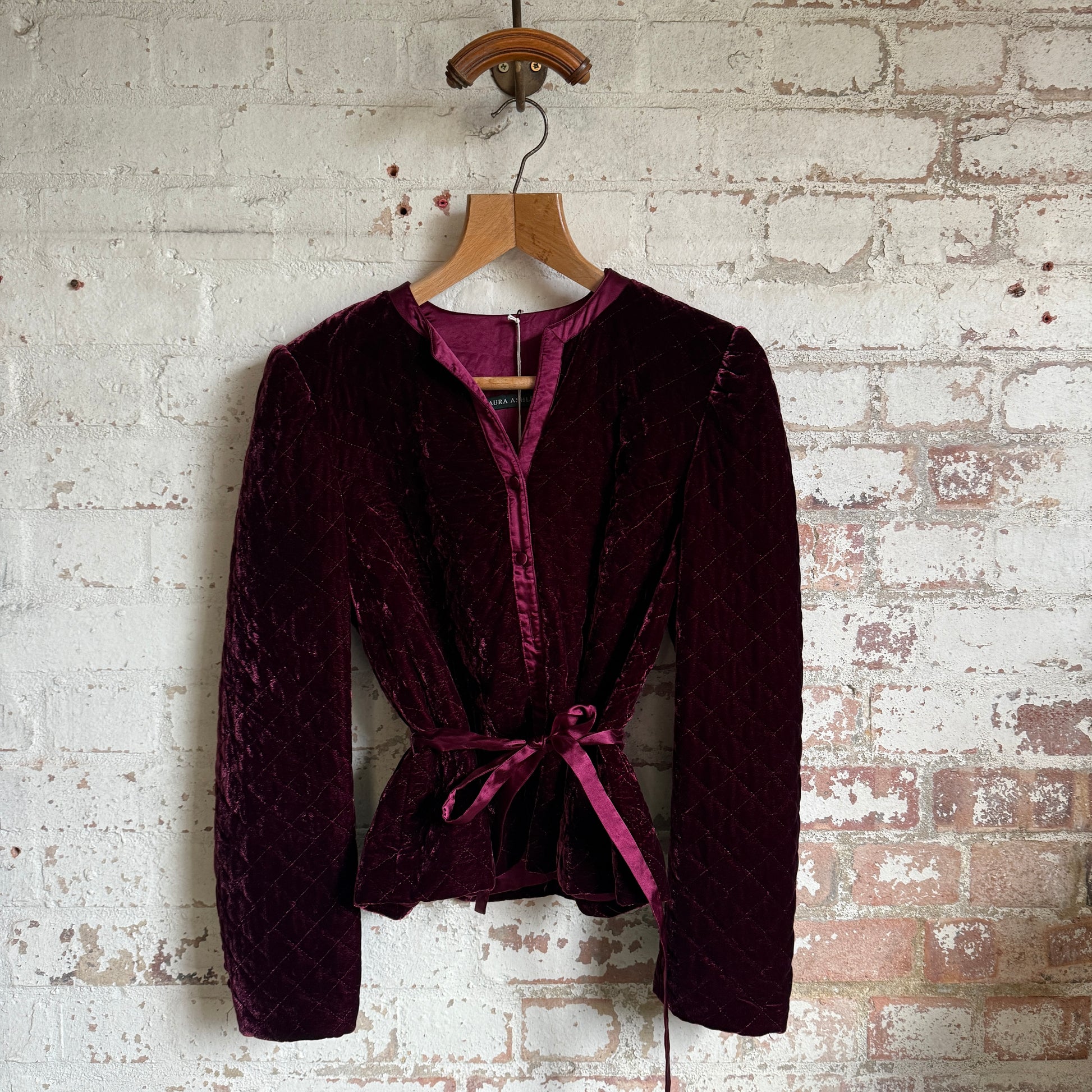 1990s Burgundy Red Laura Ashley Velvet Jacket Coat