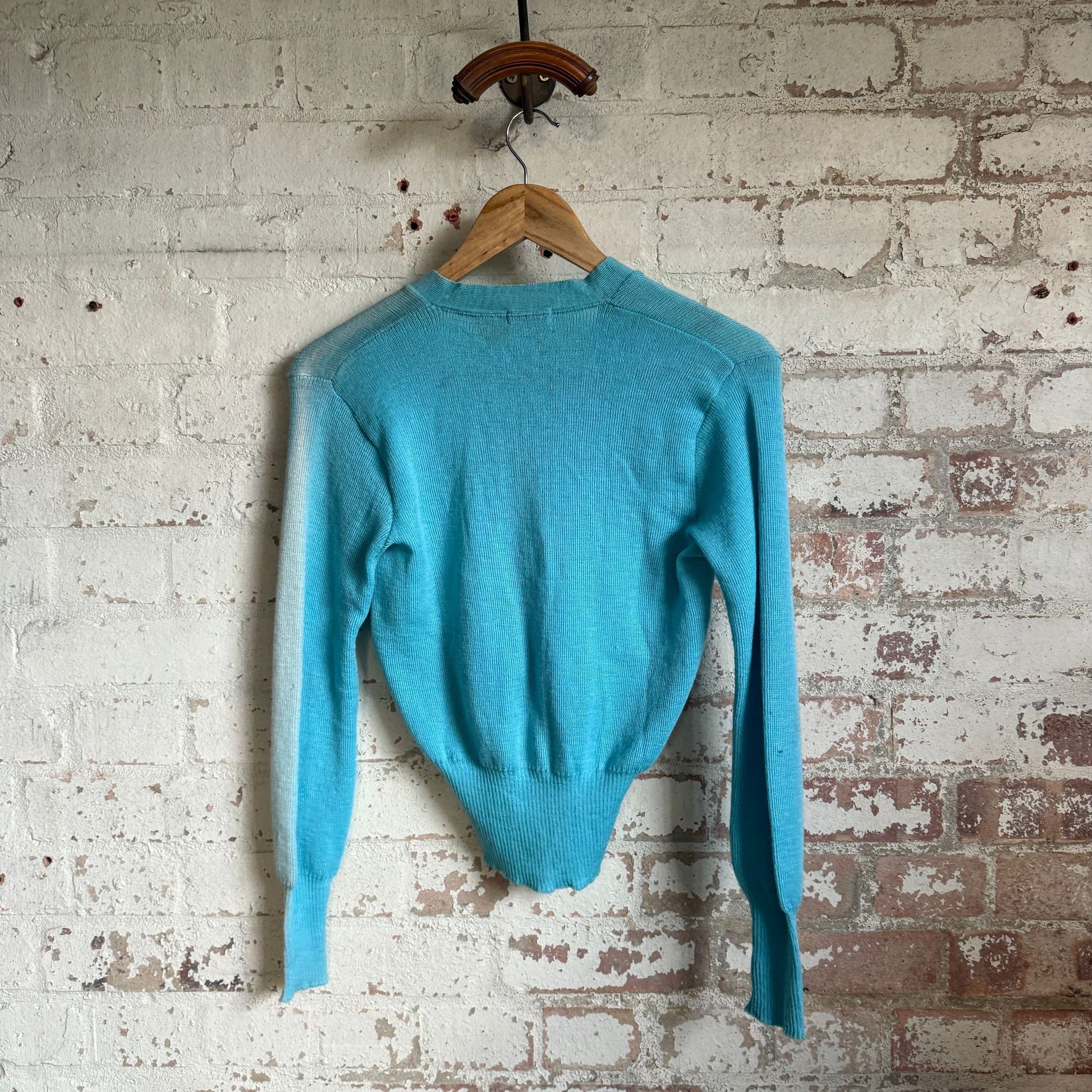 1950s Blue Sun Faded Wool Knitted Cardigan Jumper