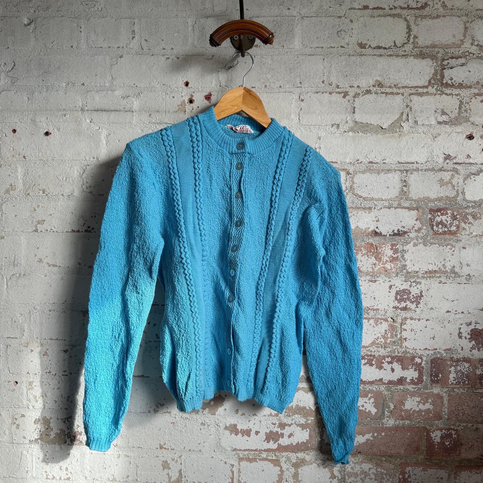 1950s Blue Wool British Knitted Cardigan