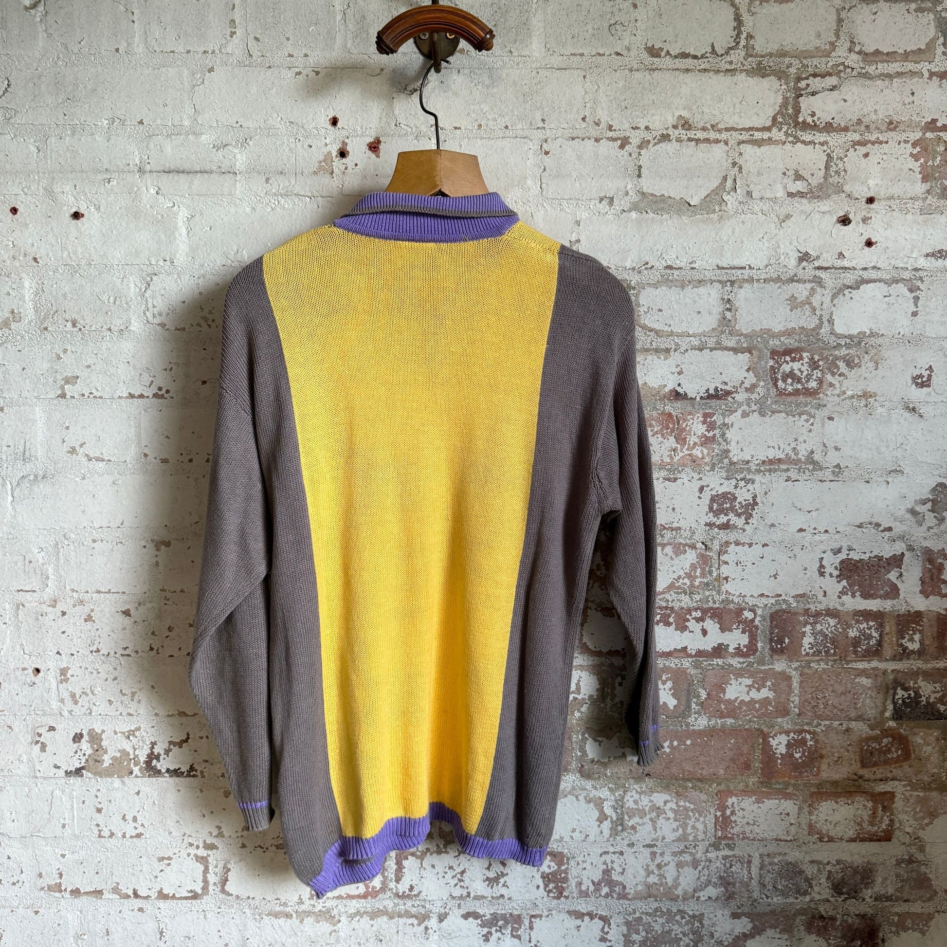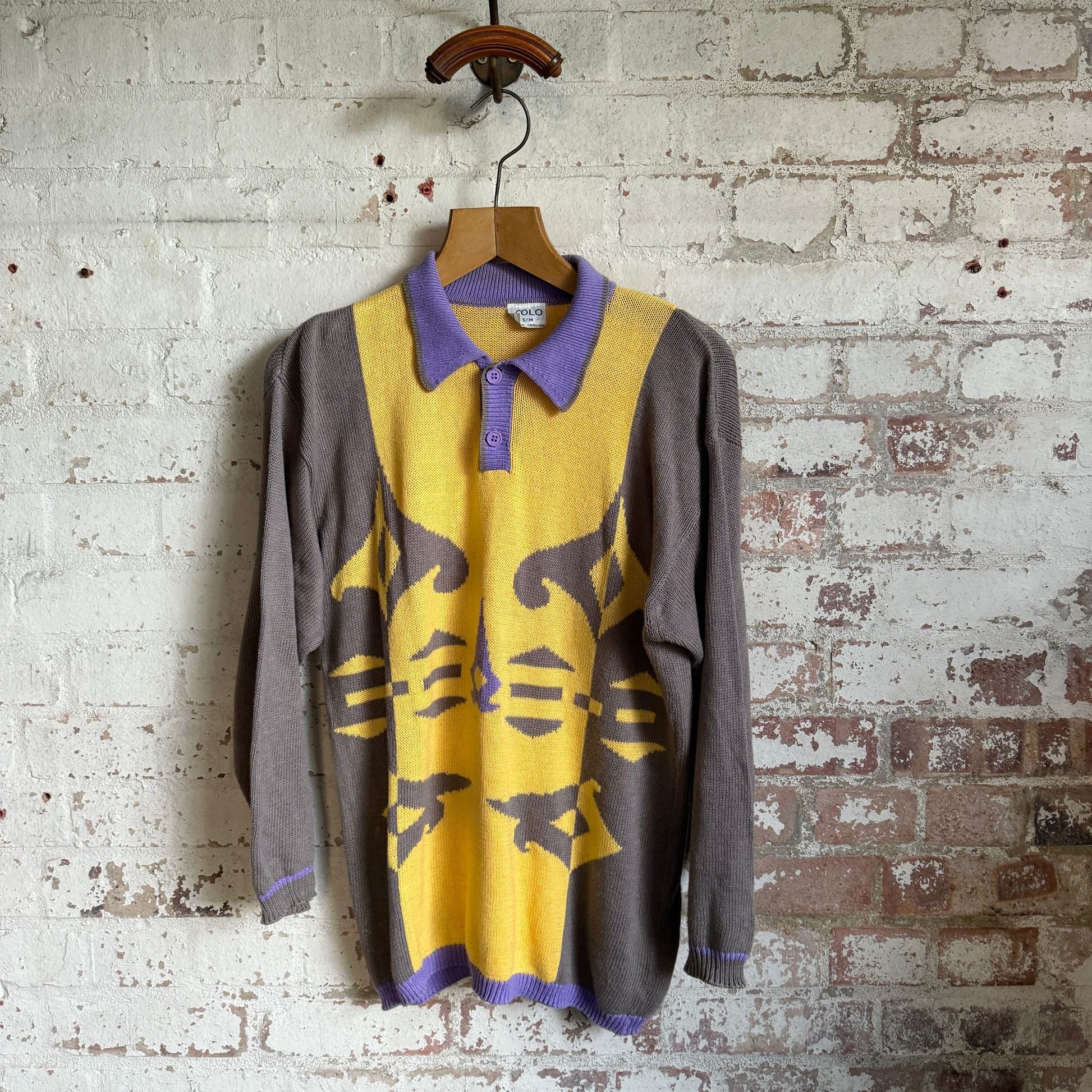1980s Brown and Yellow Knitted Polo Shirt Top Jumper