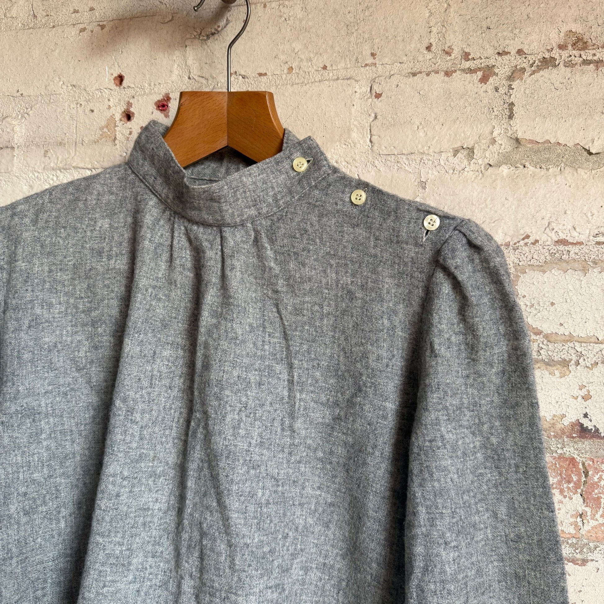 1980s Unusual Italian Grey Wool Button Smock Shirt