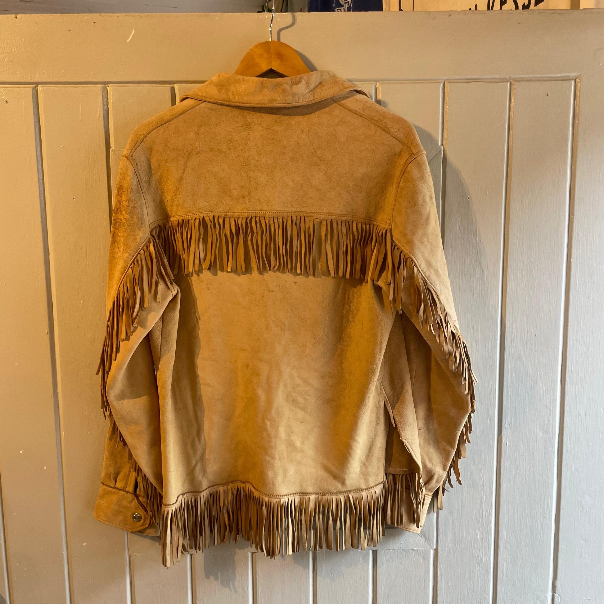 1950s Beige Fringe Leather Western Pullover Jacket Smock