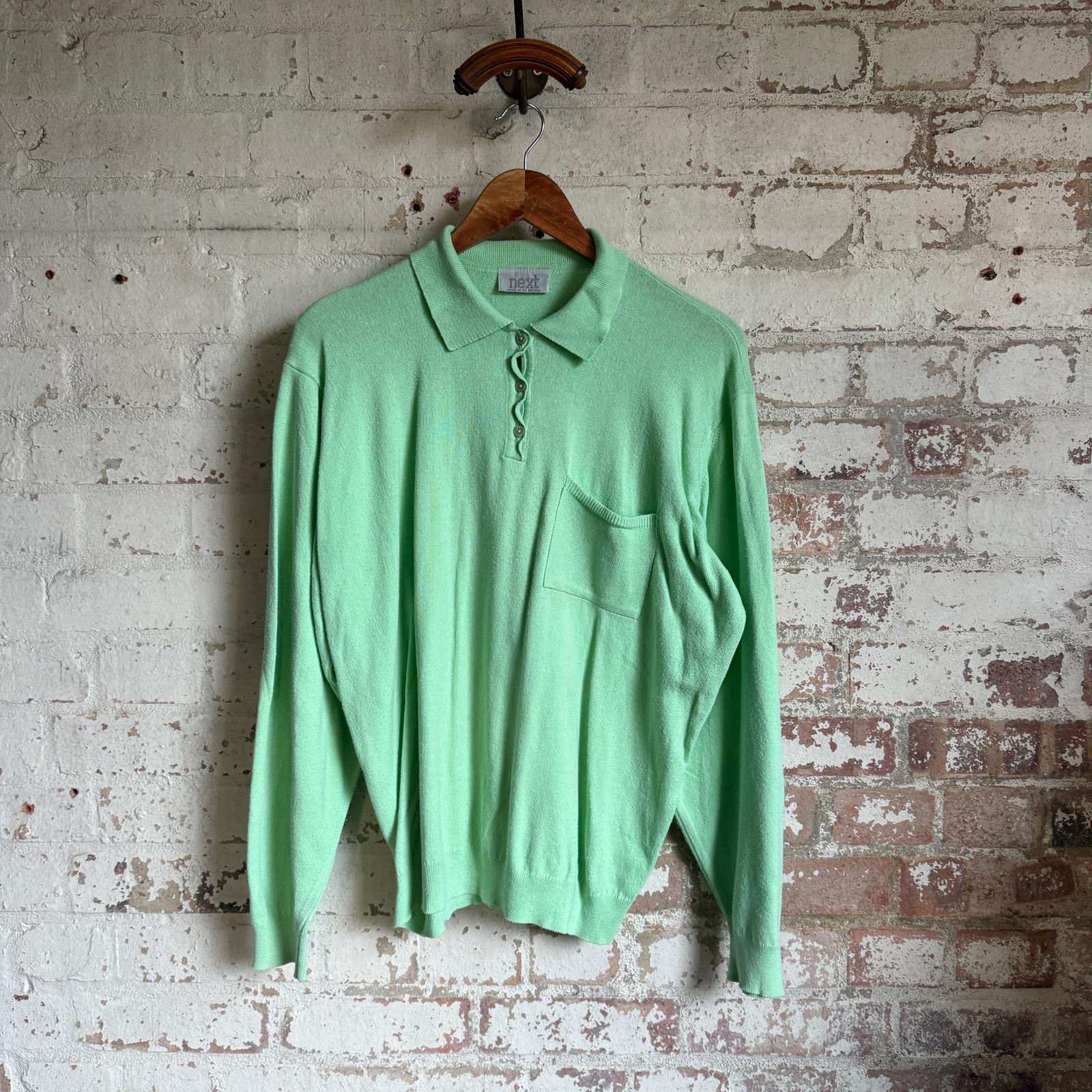 1990s Green Next Knitted long Sleeve Polo Shirt Top