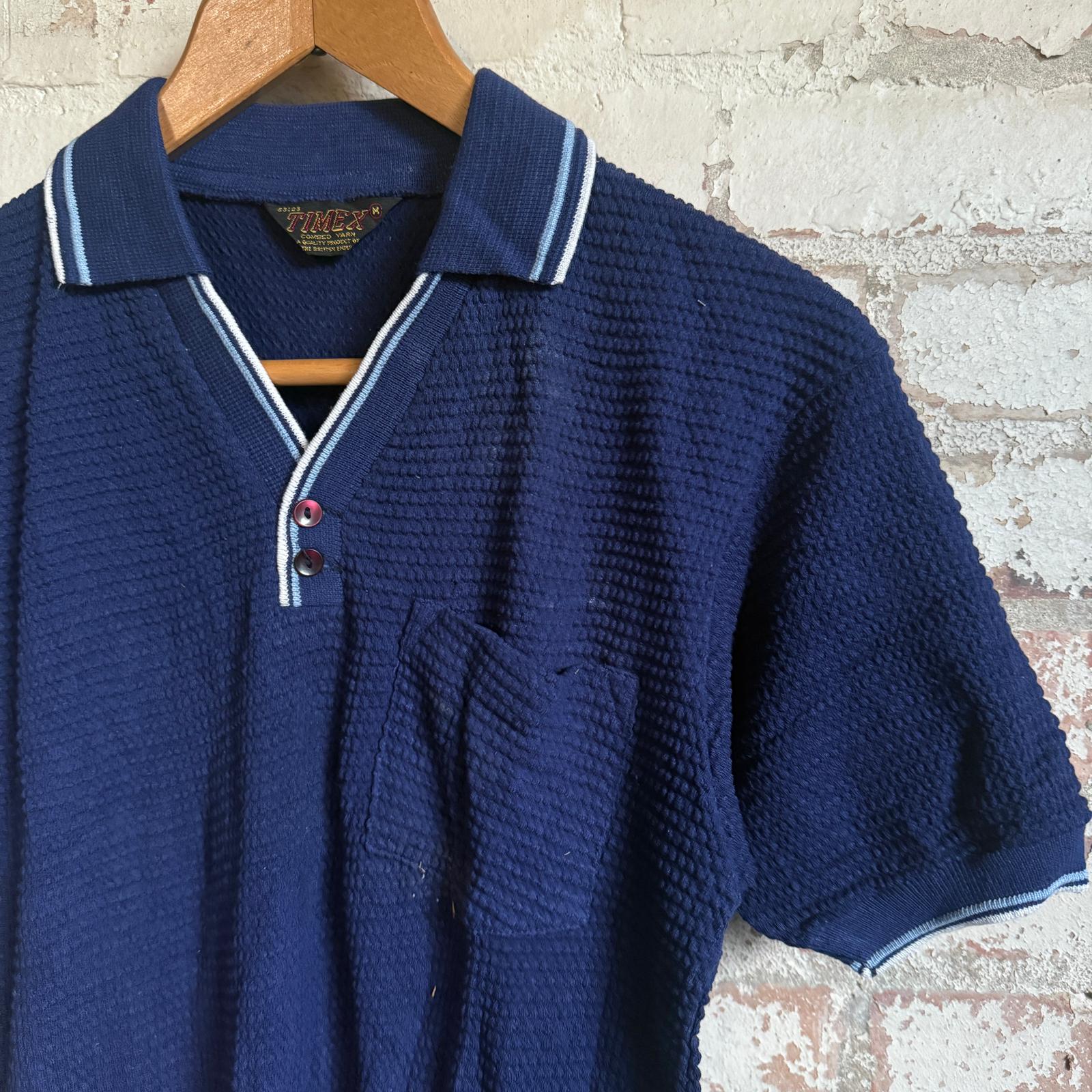 1960s Navy British Timex Patterned Polo Shirt
