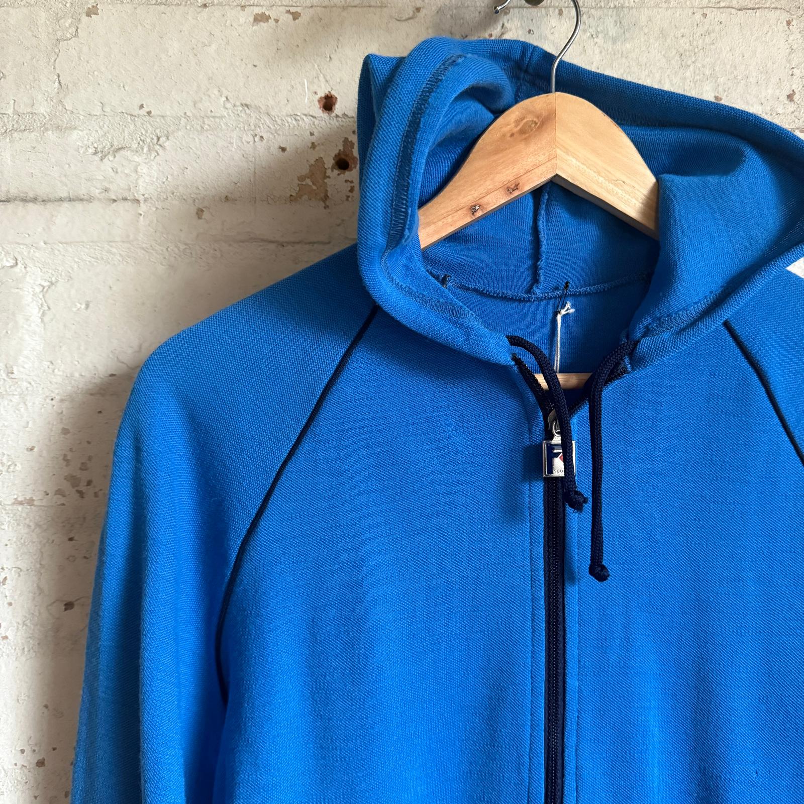 1980s Blue Raglan Zip Up Hoodie Sweatshirt