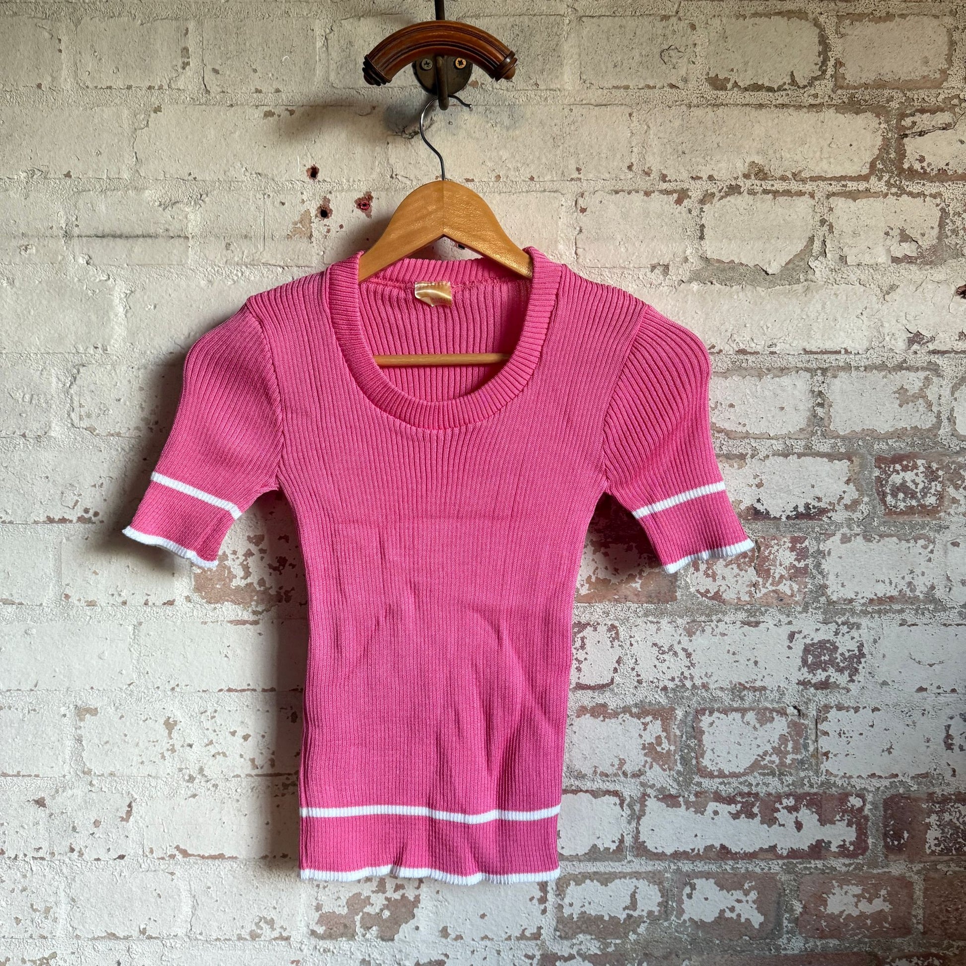 1970s Pink Knitted T-Shirt Top