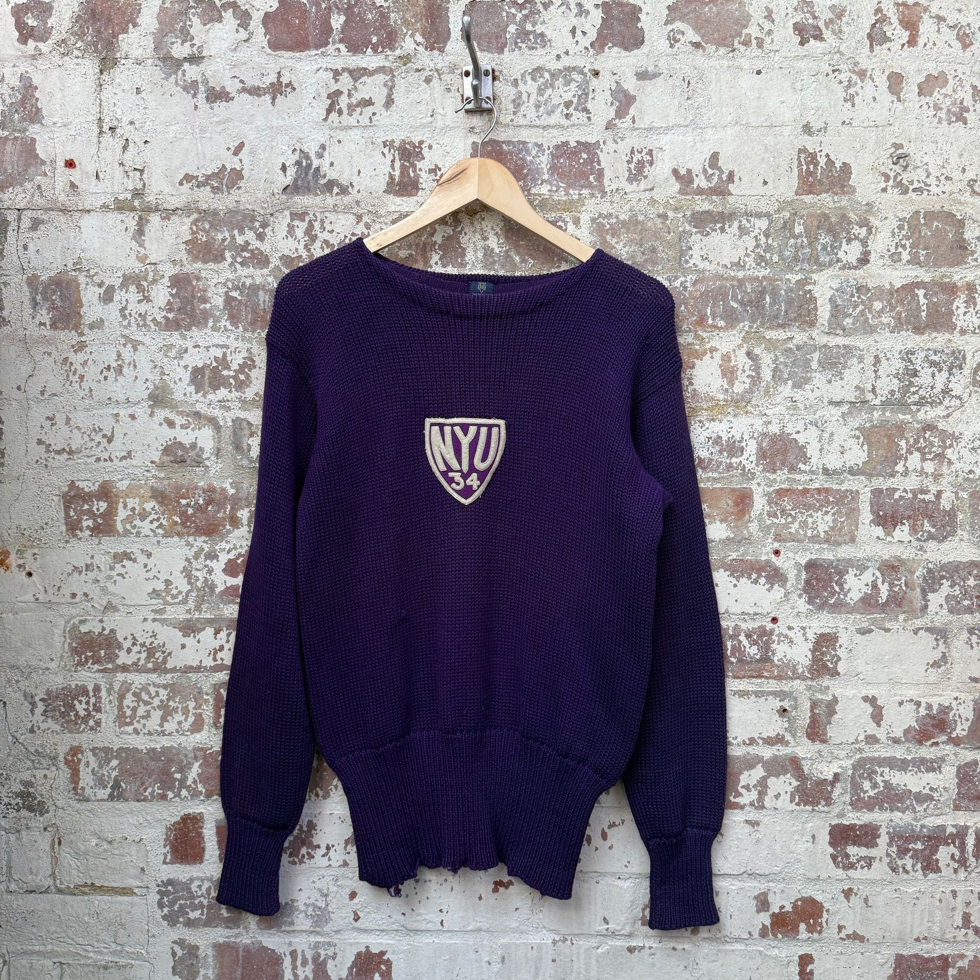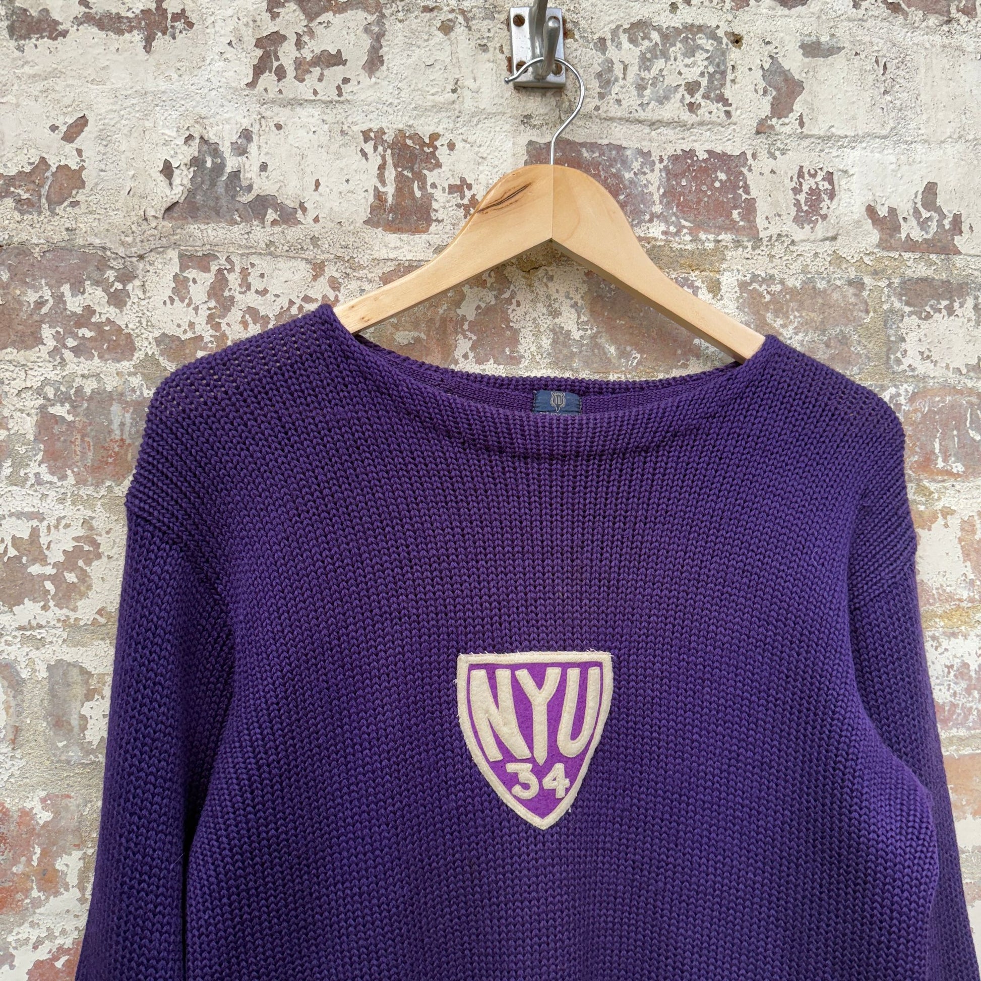 1930s Purple NYU Wool Boat Neck College Knitted Jumper