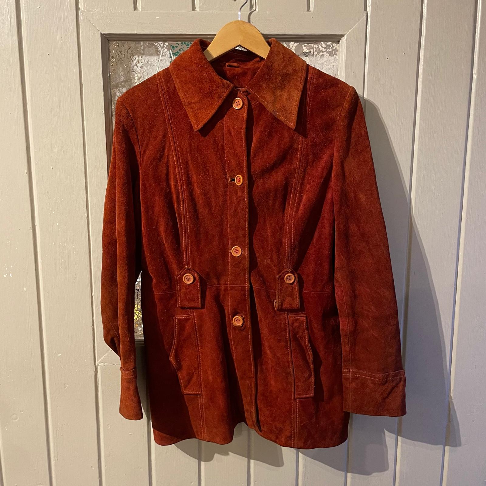 1970s Burnt Orange Suede Leather Dagger Collar Jacket