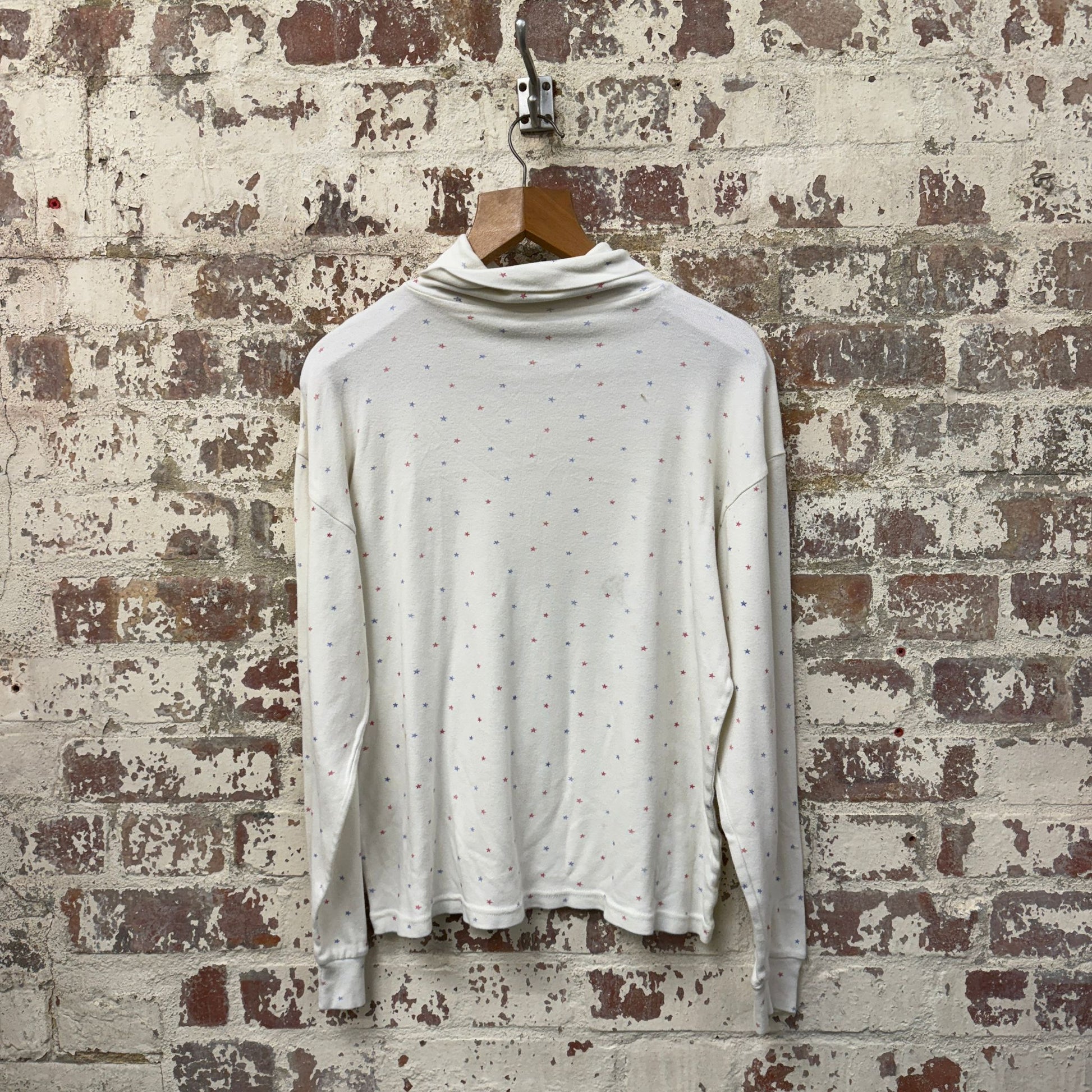 1980s White Graphic Star Long Sleeve Roll Neck Top
