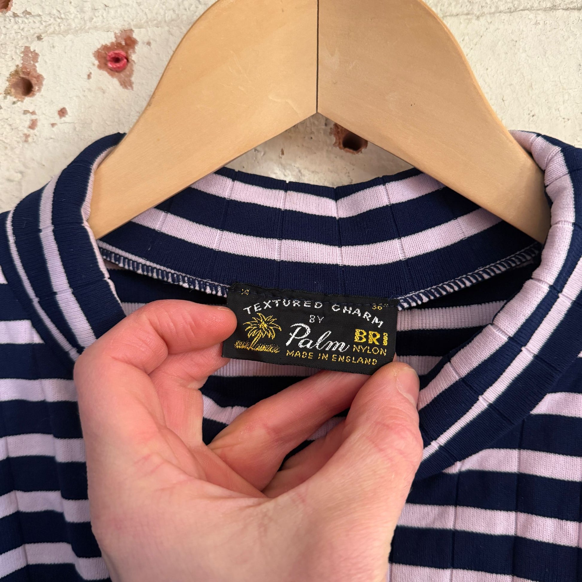 1970s Navy StripeD Roll Neck Sleeveless Vest Top