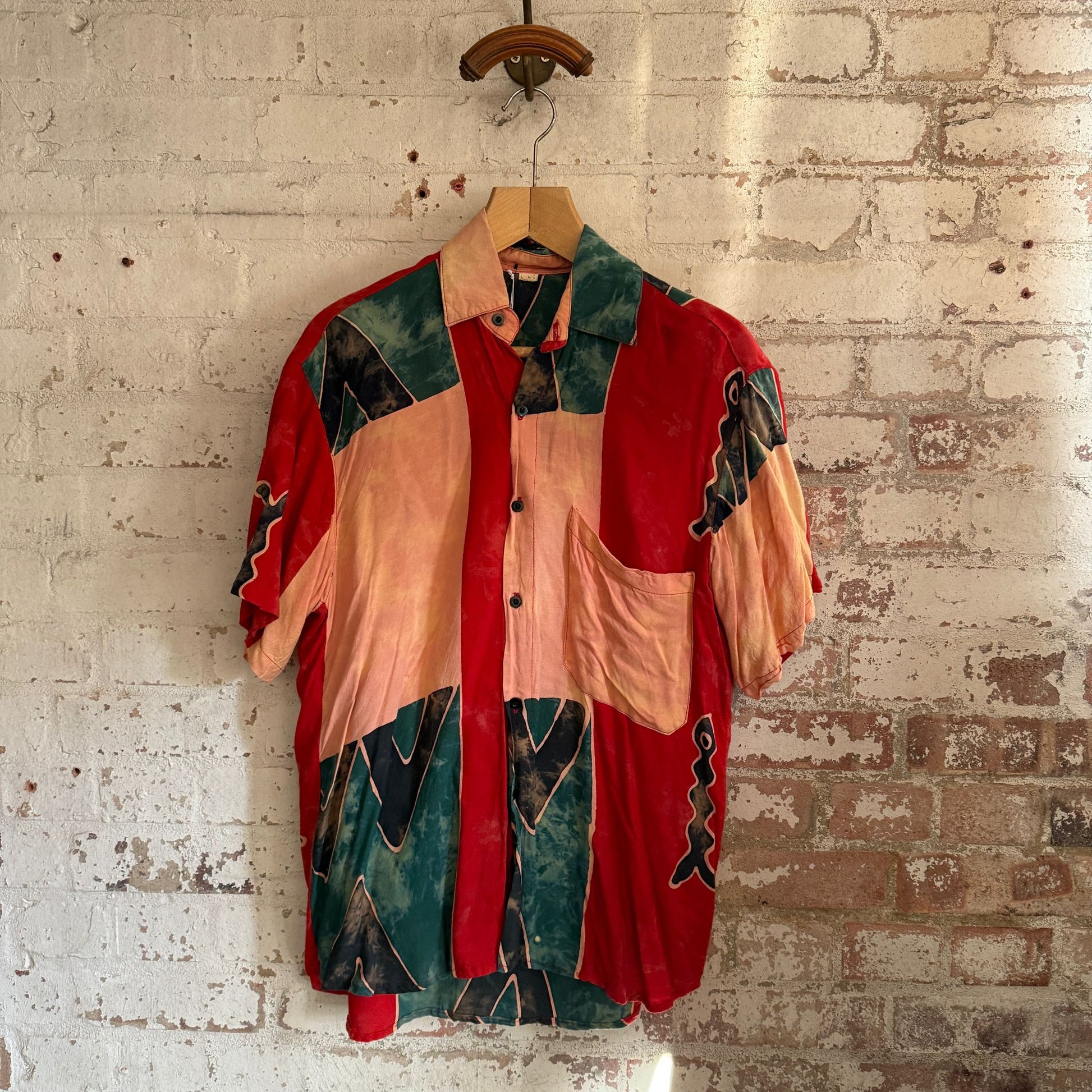 1980s Rayon Multicoloured Patterned Unusual Shirt