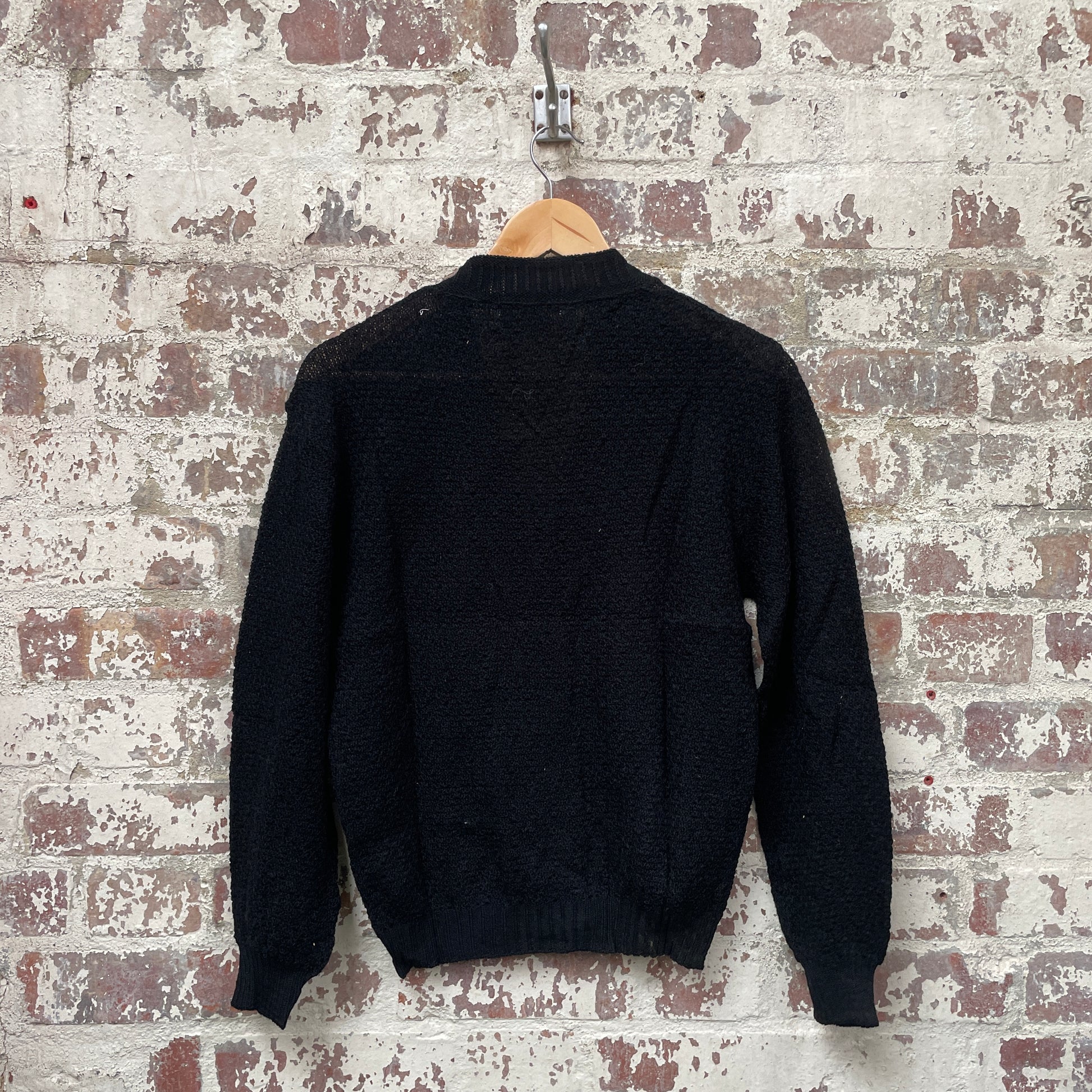 Vintage 1960s Black Knitted Deadstock Cardigan Jumper