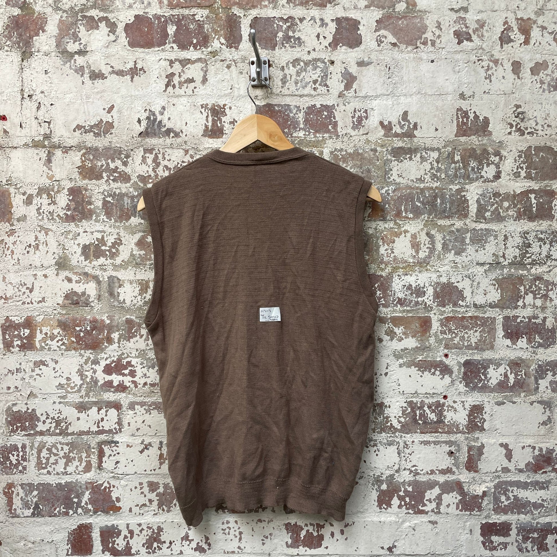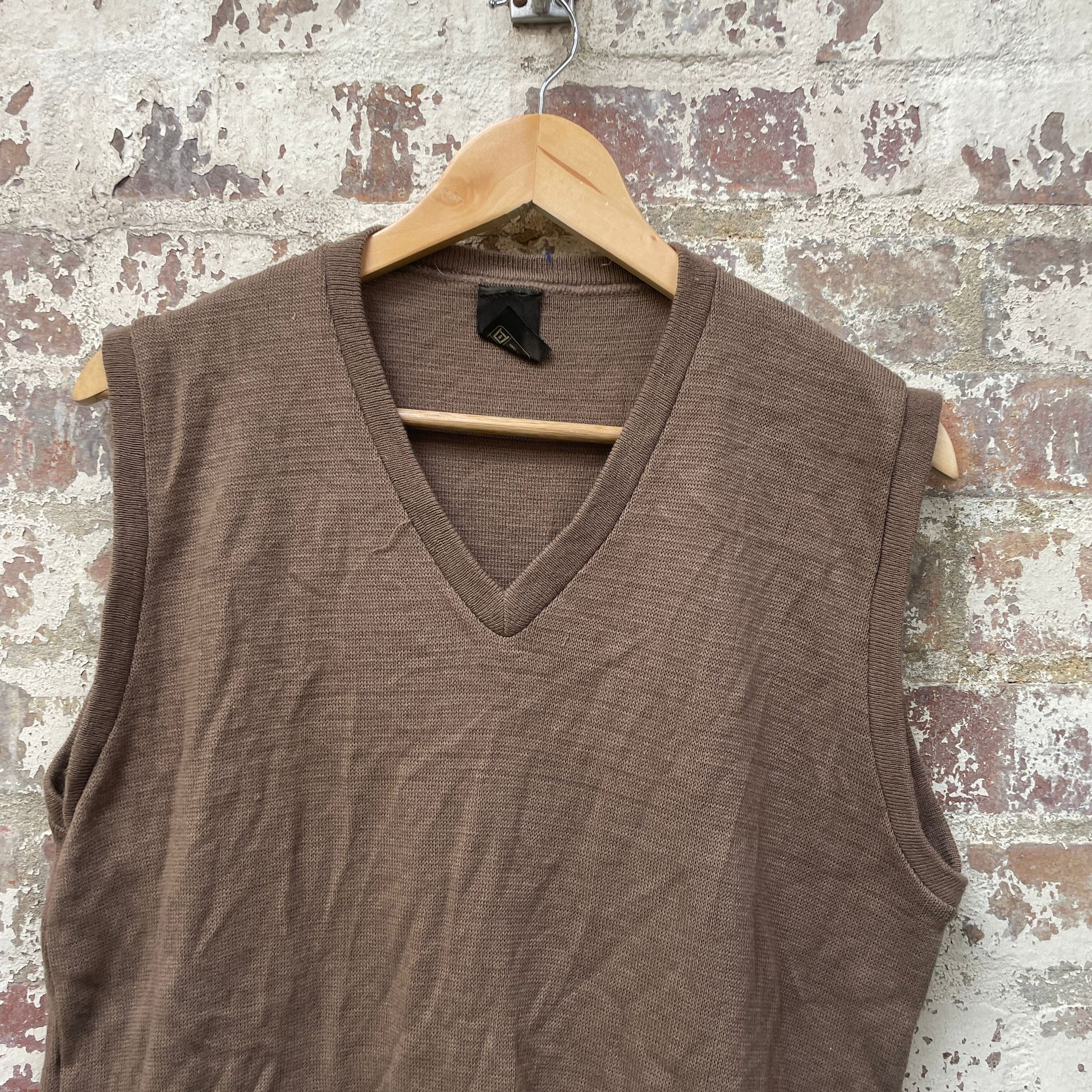 Vintage 1970s 1980s Brown Beige Knitted Tank Top Sweater Vest Jumper