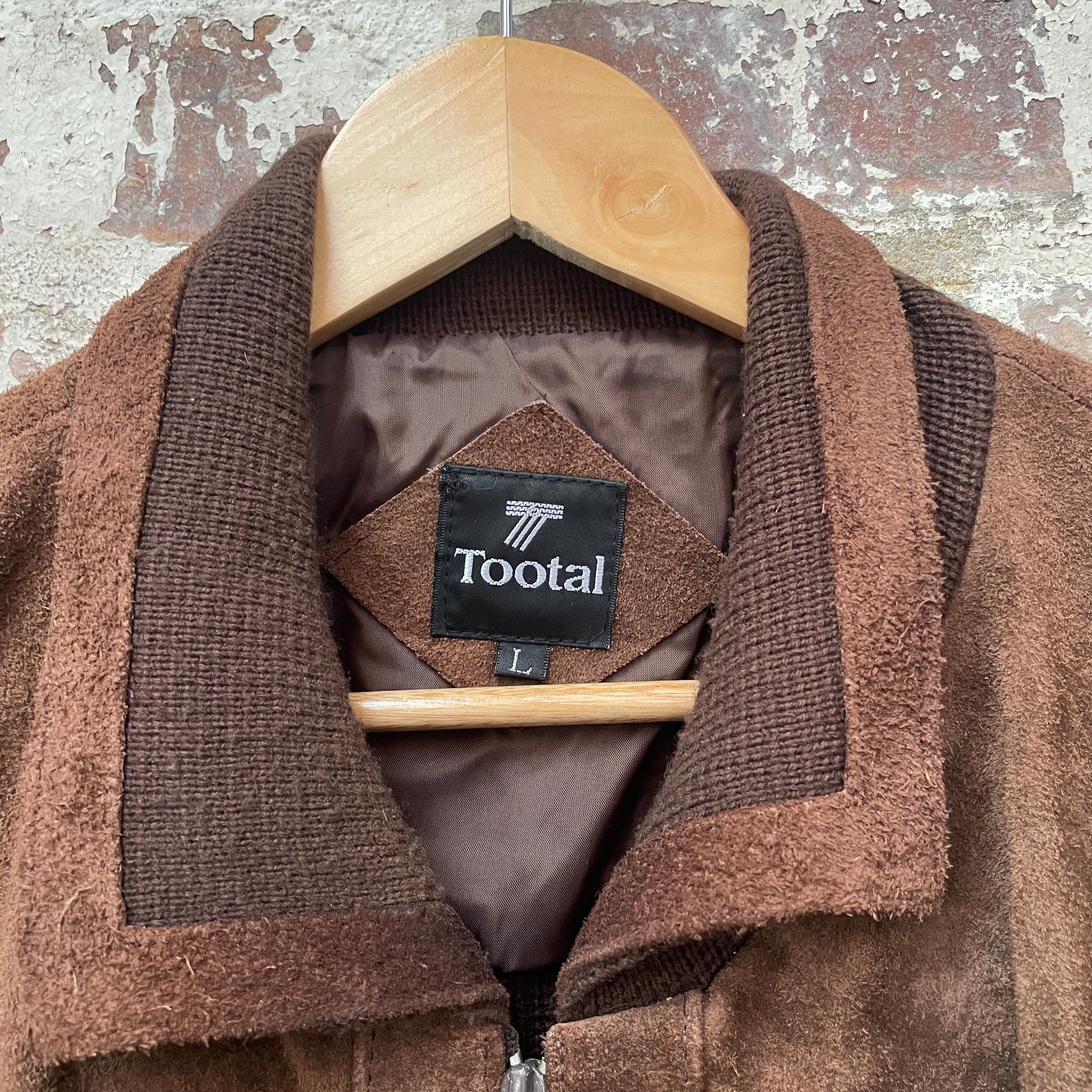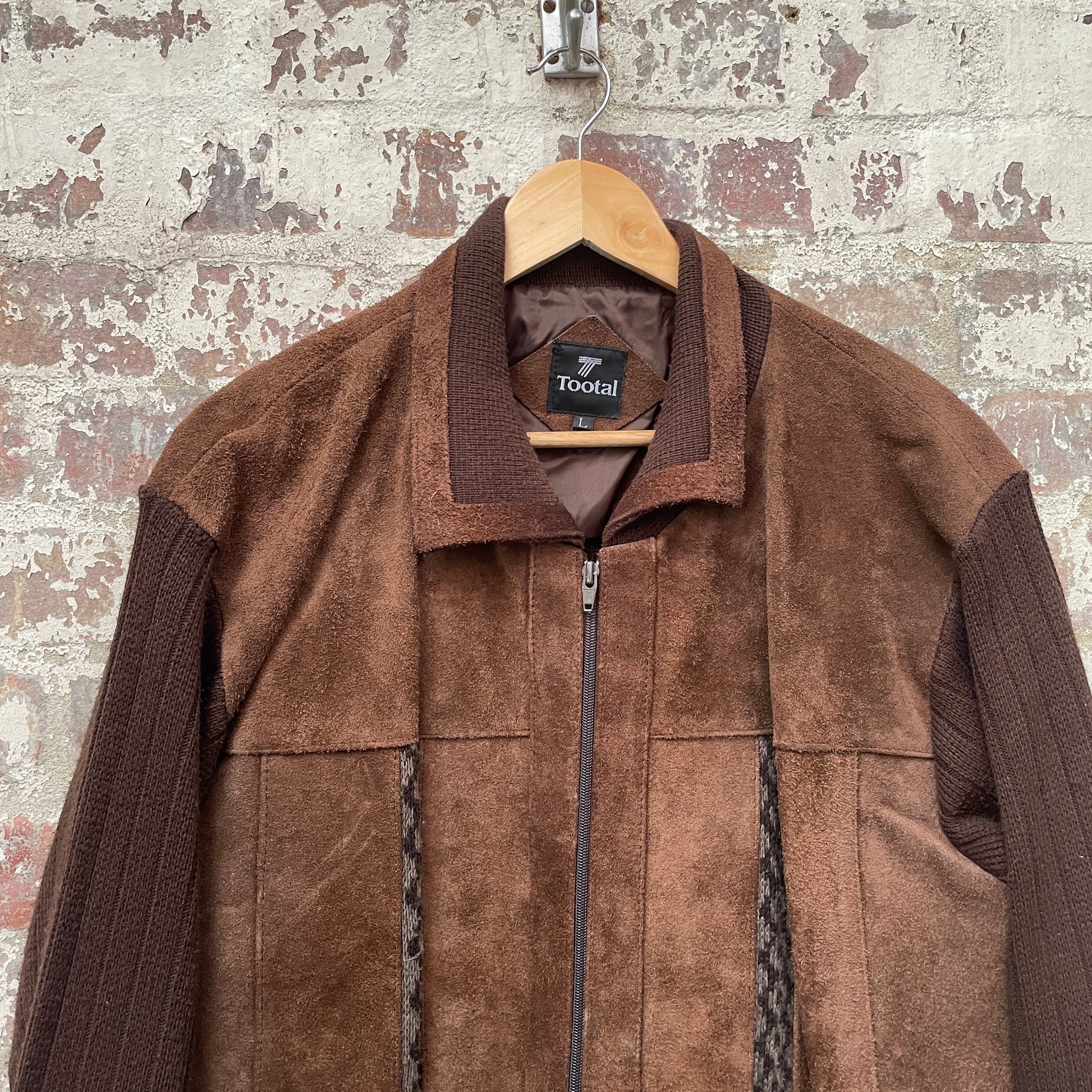 Vintage 1970s 1980s Brown Suede Leather Knitted Cardigan Jumper
