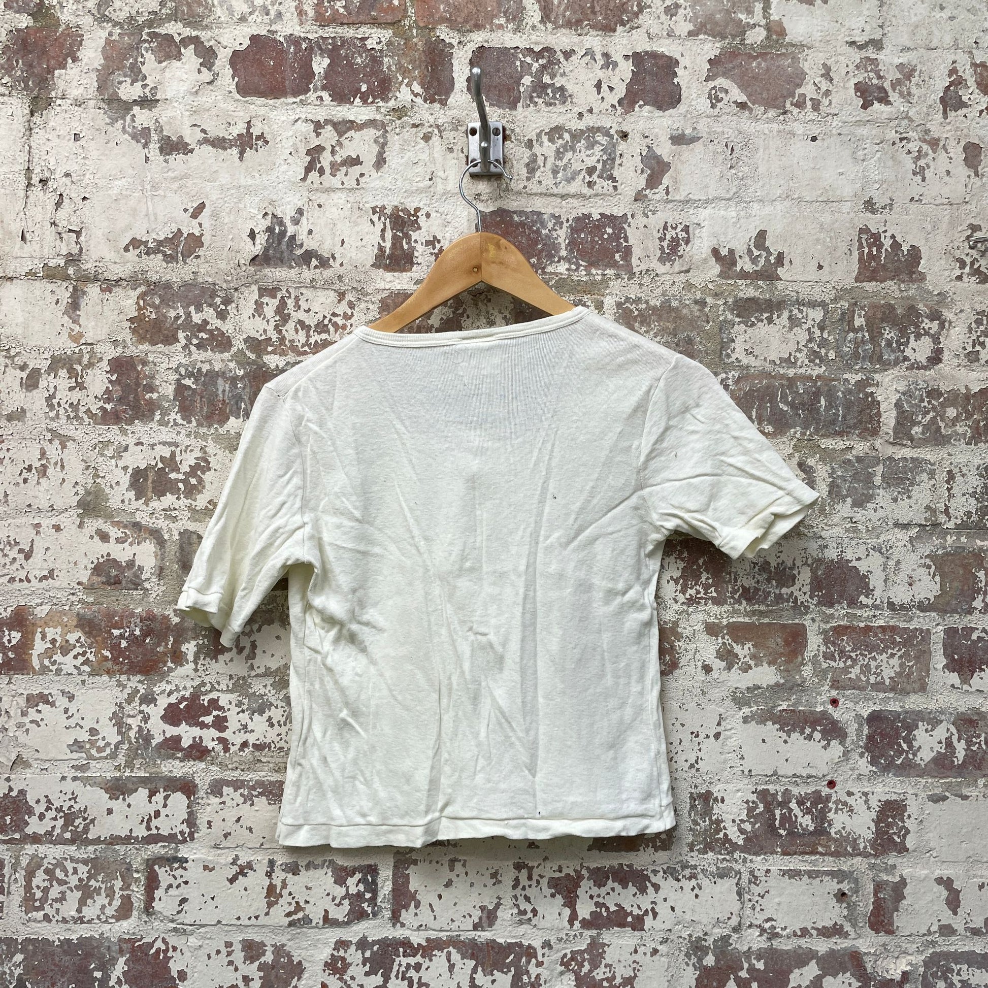 Vintage 1970s 1980s Cream Button t-Shirt Top