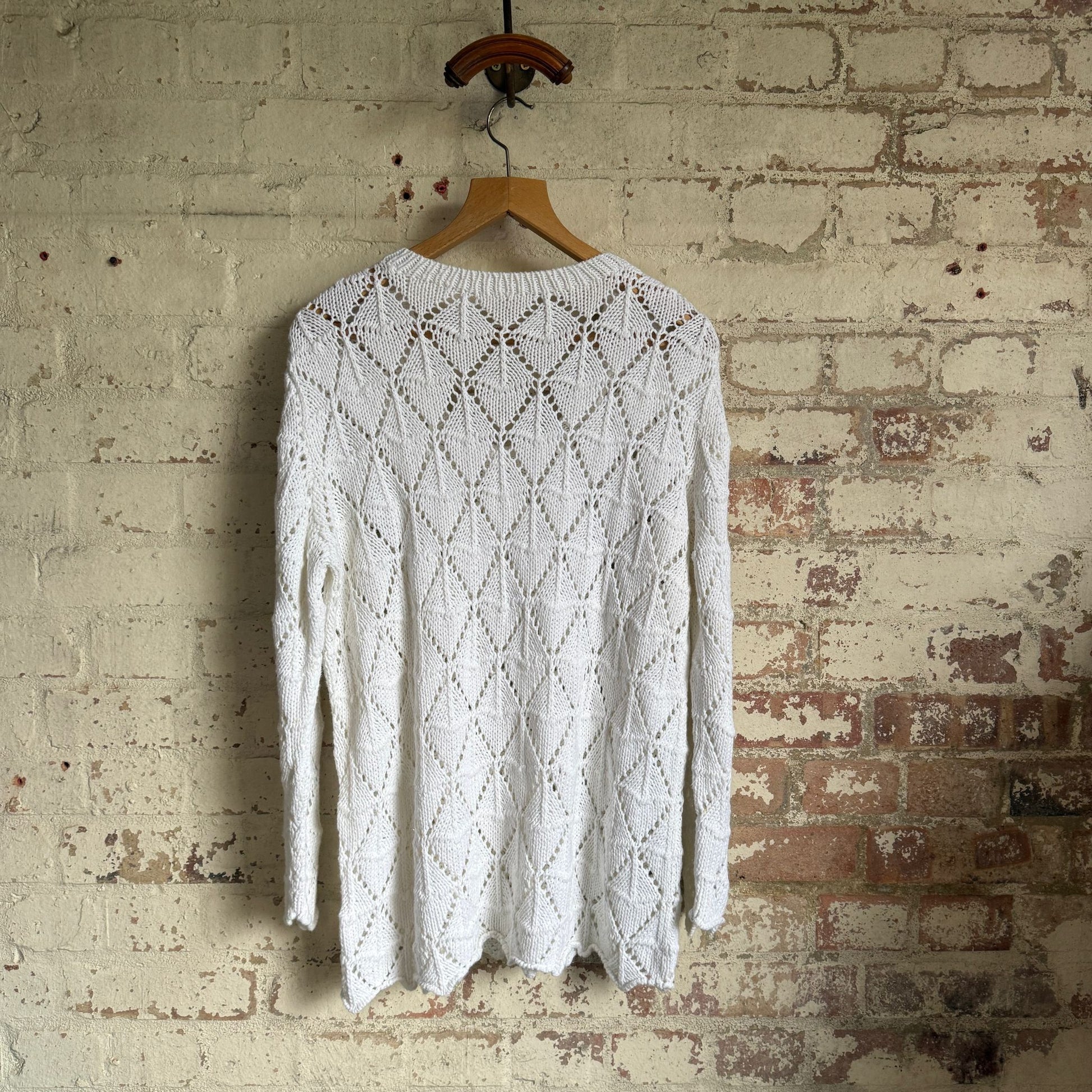 1980s White Diamond Crochet Knitted Jumper