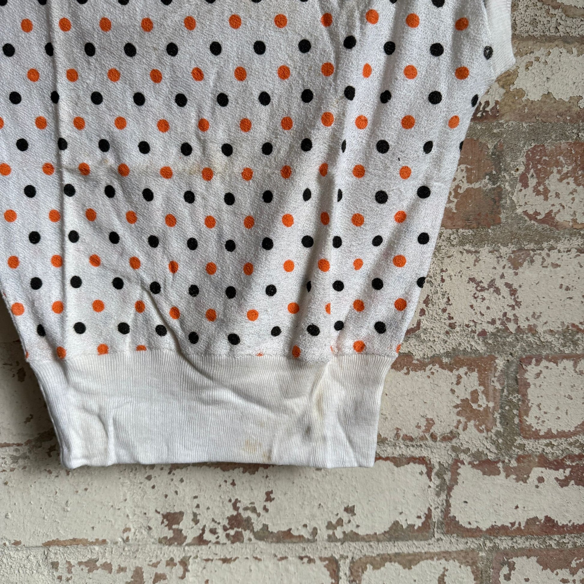 1950s White Polka Dot Towelling Vest Blouse